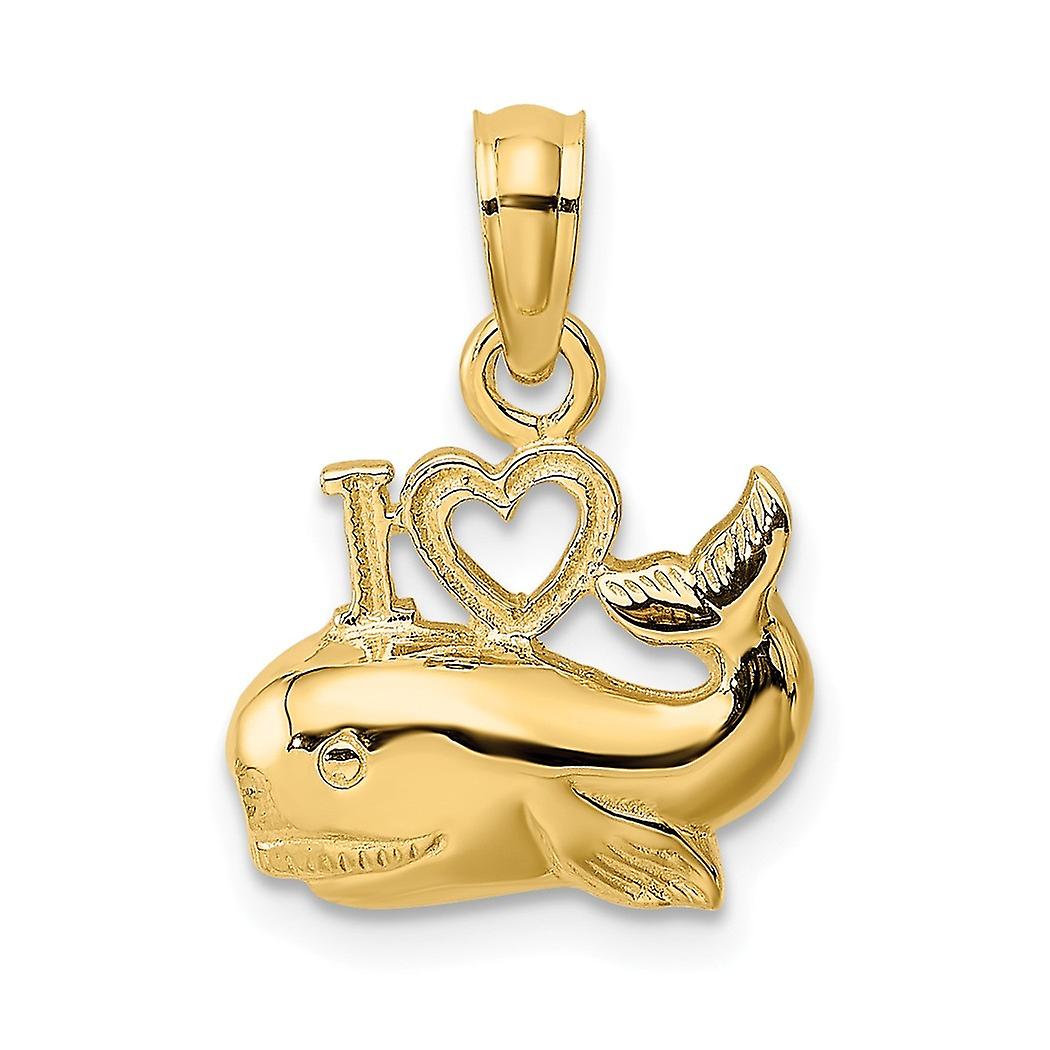 12mm 14k Gold I Love Heart Pendant Necklace Whale 2 d / High Polish-Pendant for Women