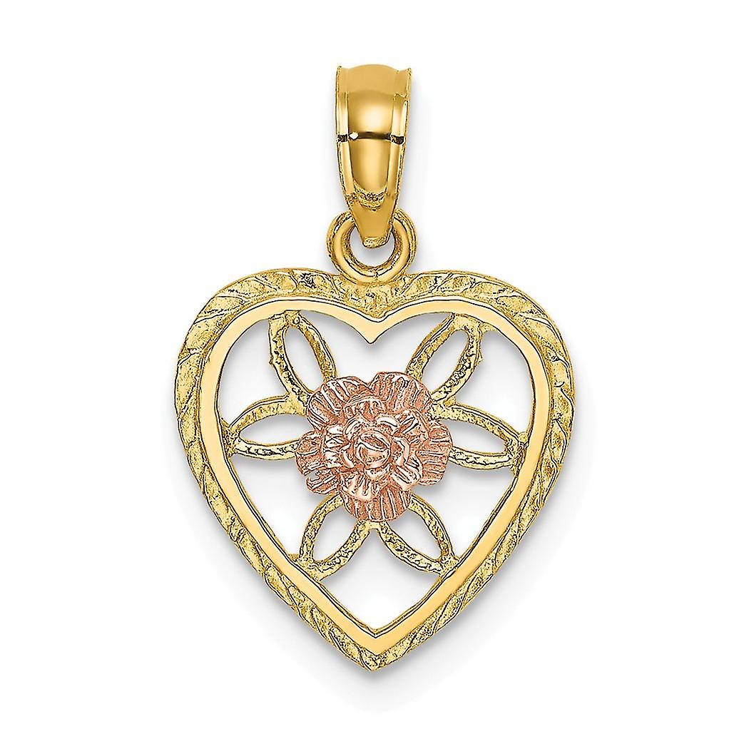 12mm 14k Two tone Gold Cut out Love Heart Pendant Necklace With (pink)flower Inside-Pendant for Women
