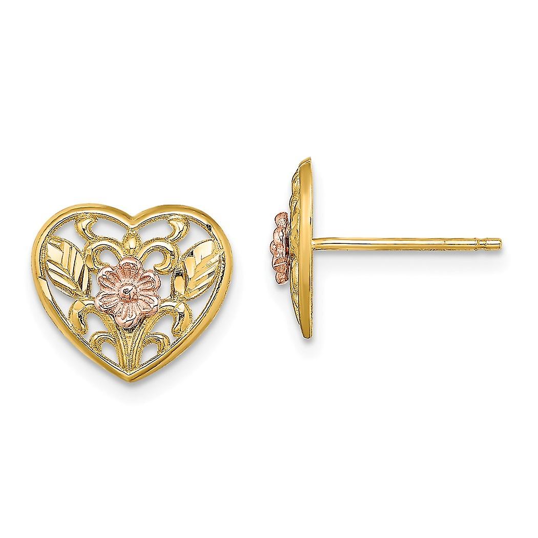12mm 14k Two tone Gold Love Heart Pendant Necklace With Pink Flower Post )-Pendant for Women
