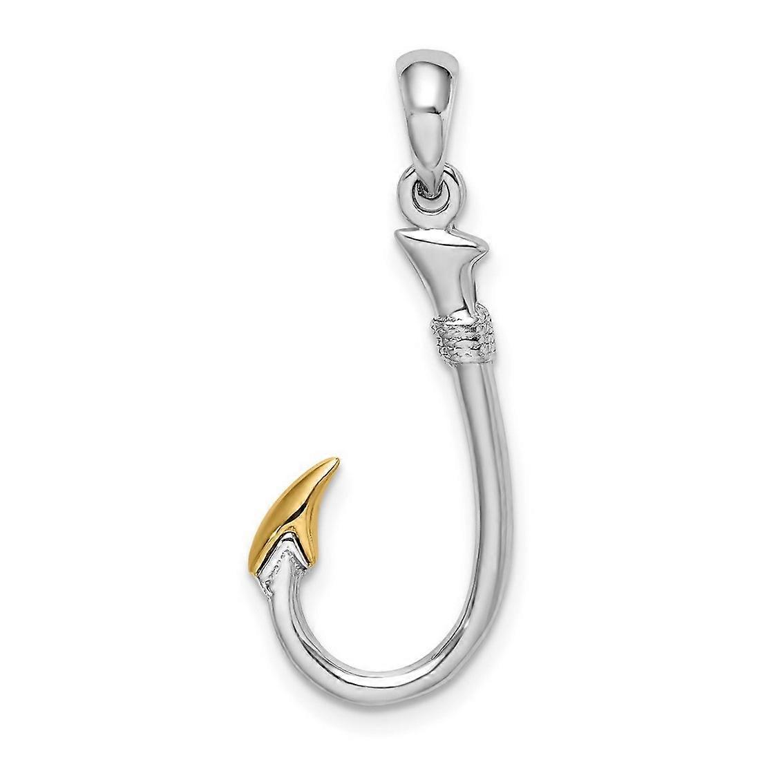 12mm 925 Sterling Silver Rhodium Plated 3d Animal Sealife Fish Hook With 14k Accent Pendant Necklace-Pendant for Women
