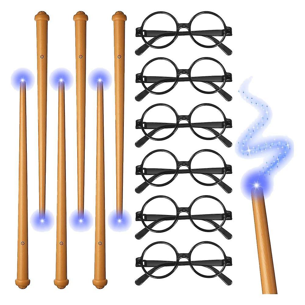 12pcs Wizard Wands And Glasses Wizard Party Supplies Sound Illuminating Magician Wizard Glasses