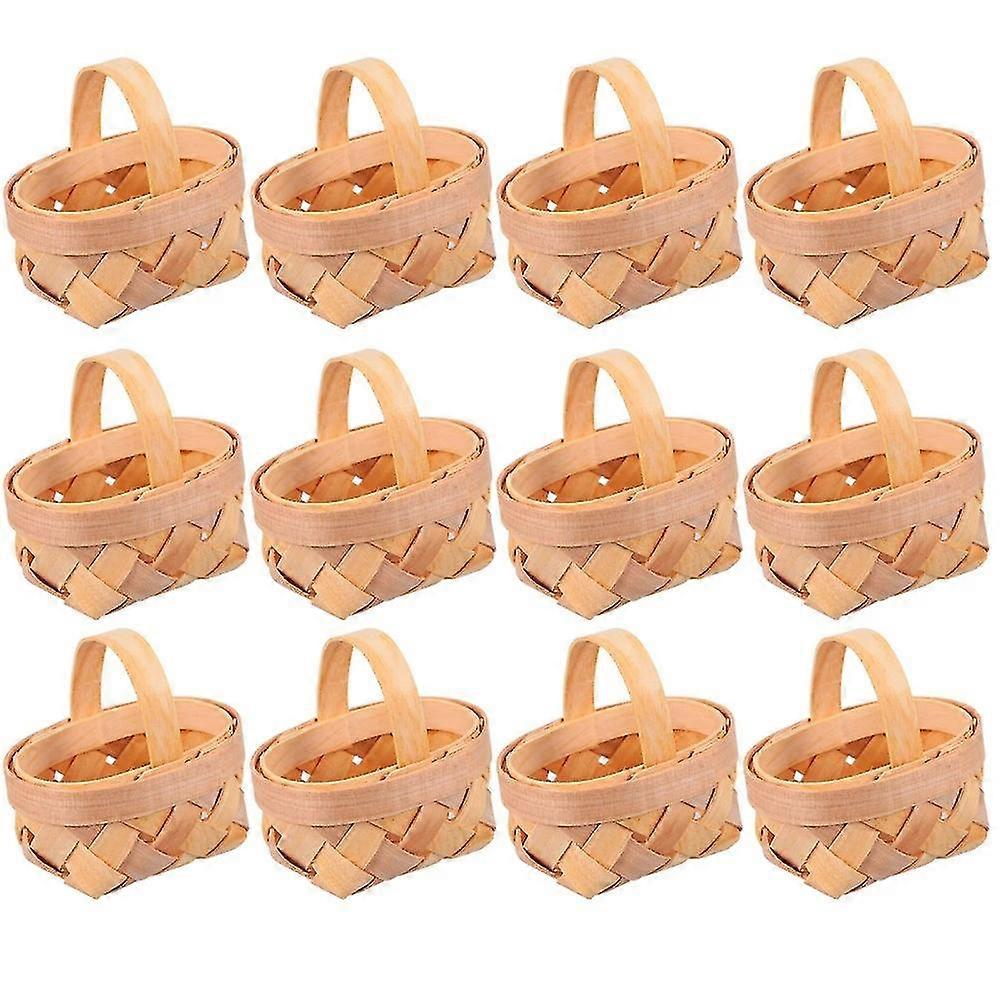 12pcs Wood Chip Mini Baskets Manual Woven Baskets Ornaments Candy Storage Box