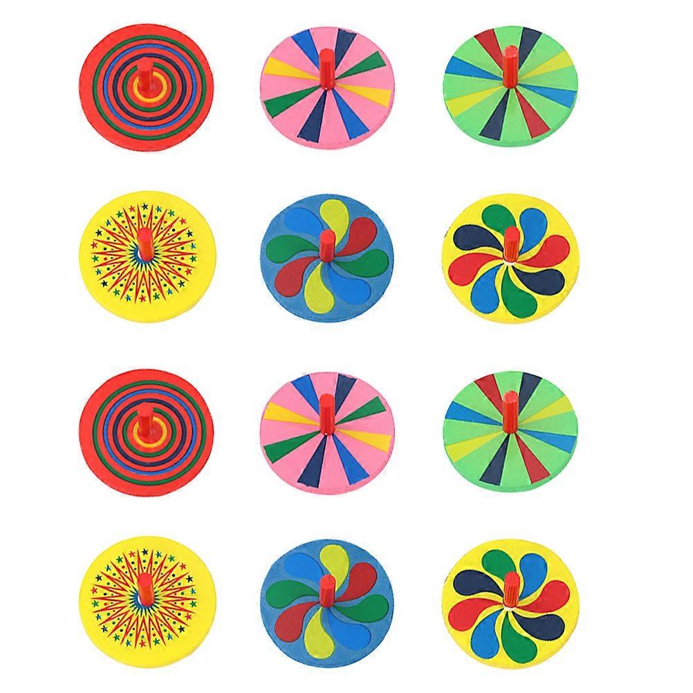 12PCS Colorful Gyro Toys Wooden Gyro Kids Toys Educational Gyro Funny Toys (Random Color)
