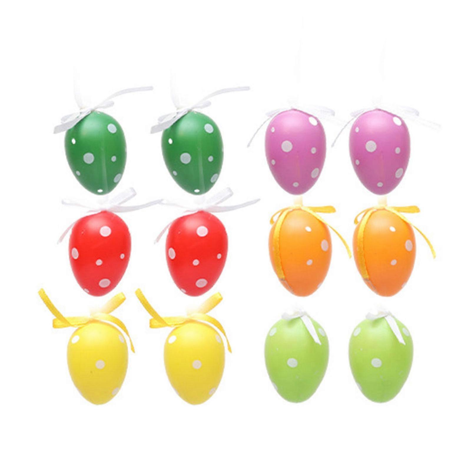 12PCS Colorful Paint Eggs Easter Holiday Room Ornament Easter Basket Stuffing Eggs with Lanyards Easter Festival Decors