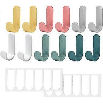 12pcs Colorful Self Adhesive Hooks, Plastic Wall Hook, Heavy Duty Towel Hooks, Towel Holder Rack Cabinet Hook For Bathroom, Bedroom, Kitchen, Office