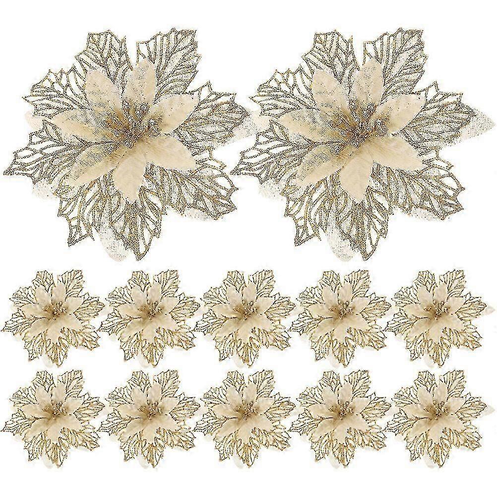 12pcs Christmas Flower Decor Decorative Glitter Flower Scene Layout Props