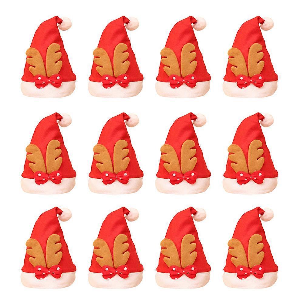 12pcs Christmas Santa Hats Adorable Bowknot Elk Horn Xmas Headdress Party Favors Photo Prop for Kids (Red)