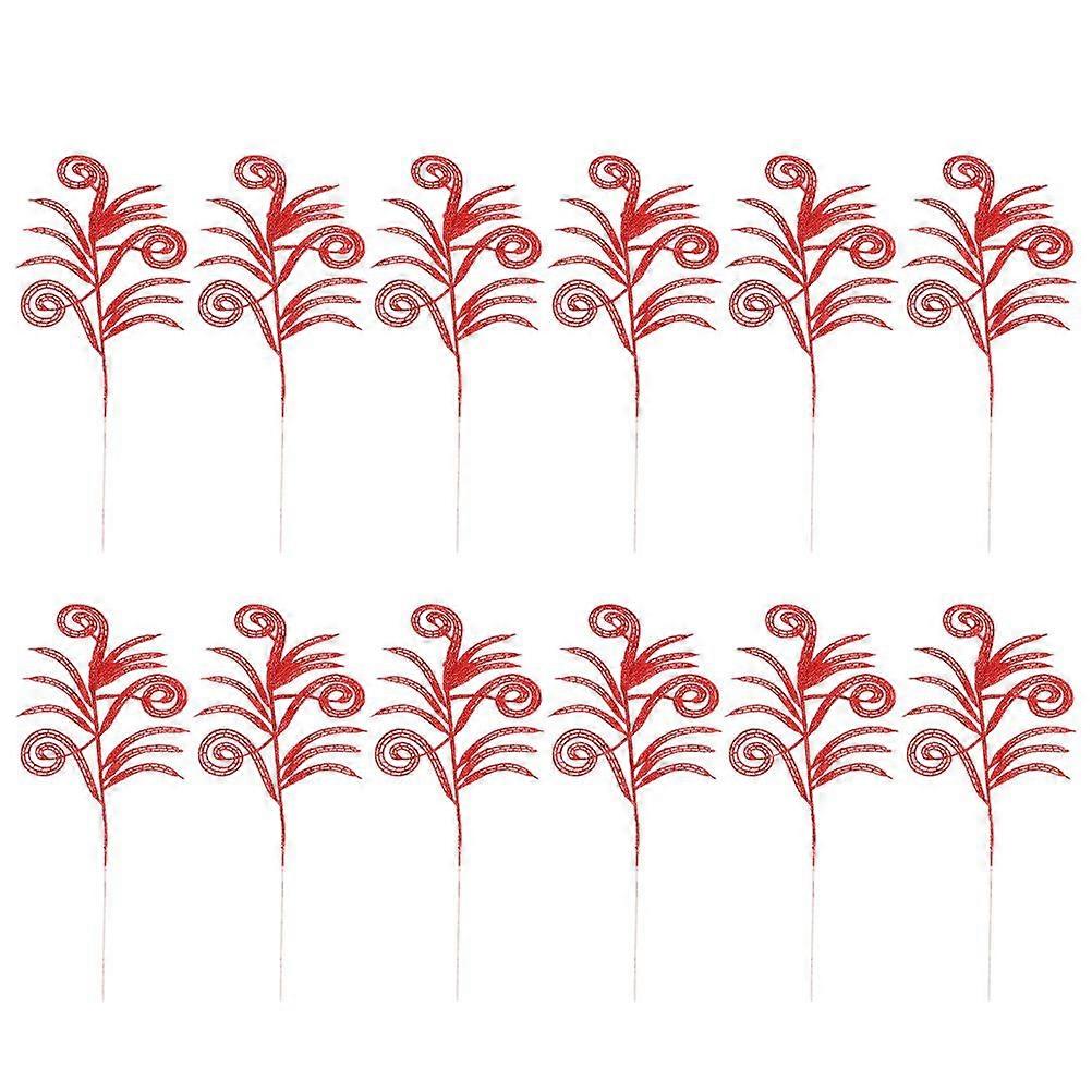 12Pcs Christmas Tree Hanging Branches Artificial Leaves Glitter Fake Leaves