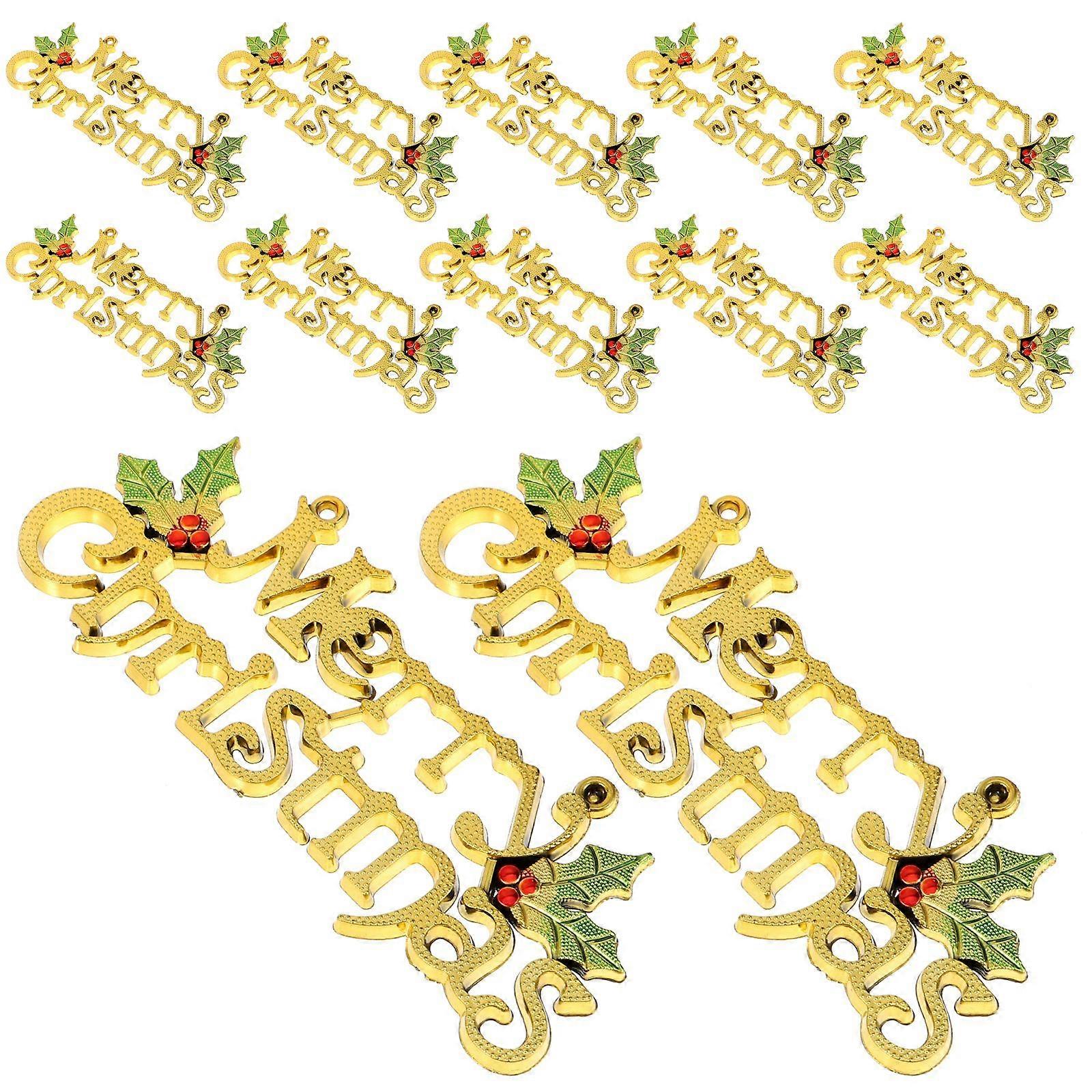 12Pcs Christmas Door Decor Plastic Hangings Blessing Phrase Boards Xmas Decors