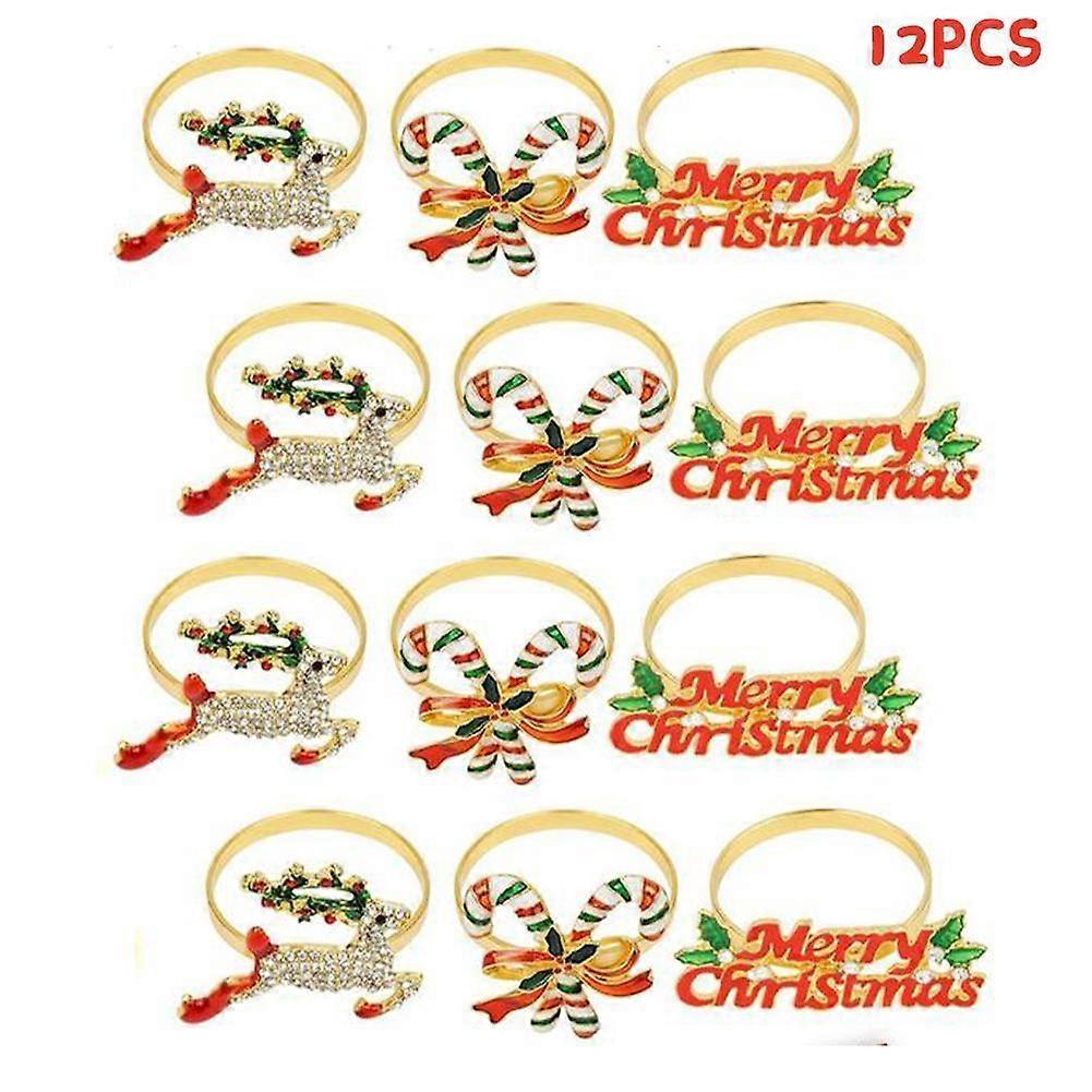 12pcs Christmas Napkin Button Elk Alphabet Napkin Ring Napkin Cloth Ring Diamond Christmas Napkin Rings