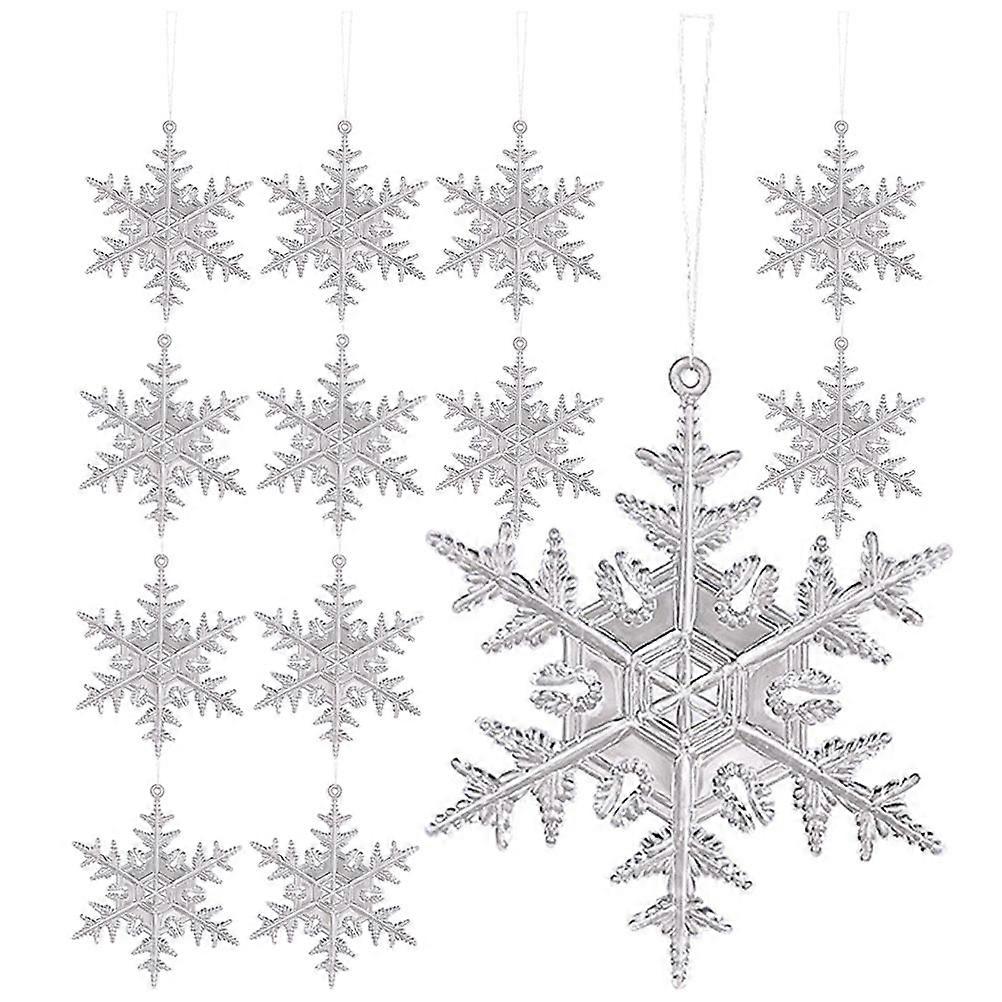 12pcs Christmas Hanging Ornaments Clear Acrylic Snowflake Decors Hanging Snowflake Ornaments