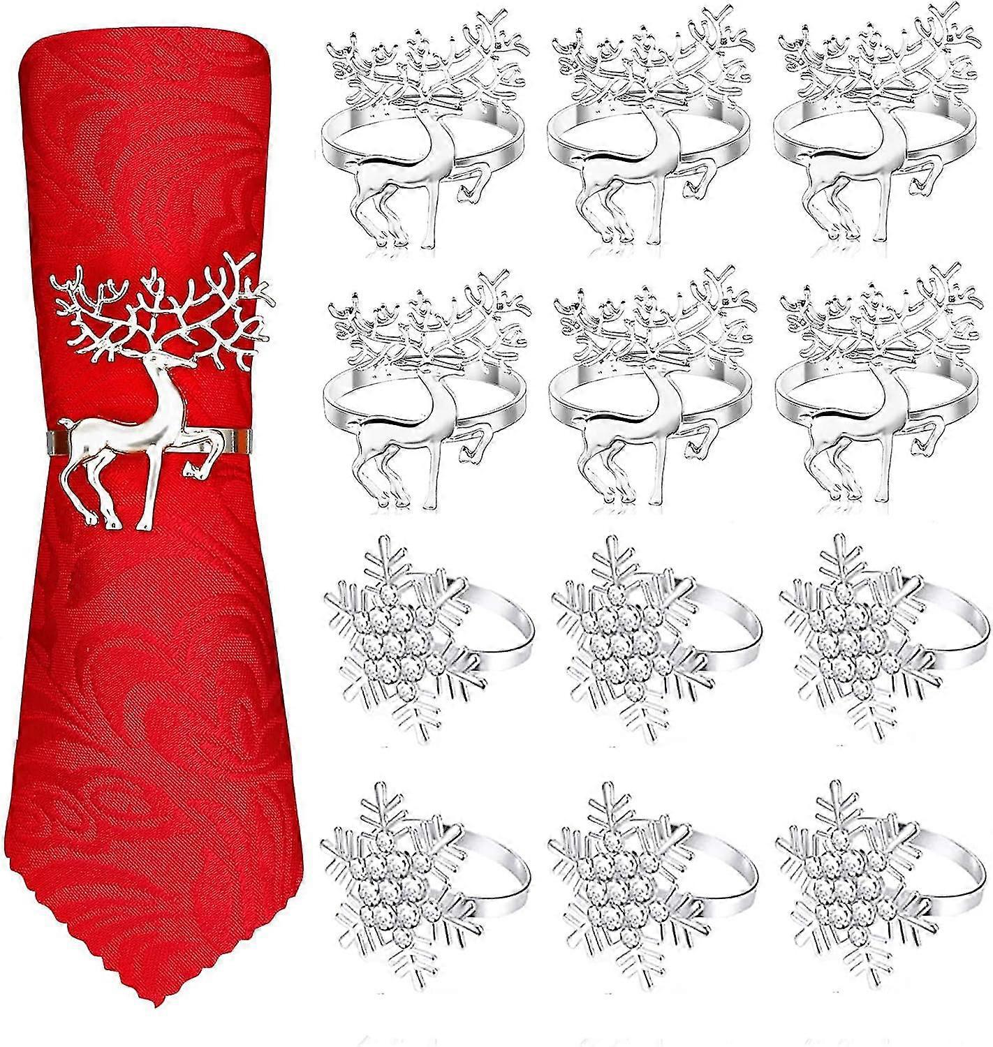 12pcs Christmas Deer Elk Snowflake Napkin Rings,xmas Napkin Rings Buckle For Dinner Party Holiday Wedding Christmas(reindeer Snowflake, Silver)