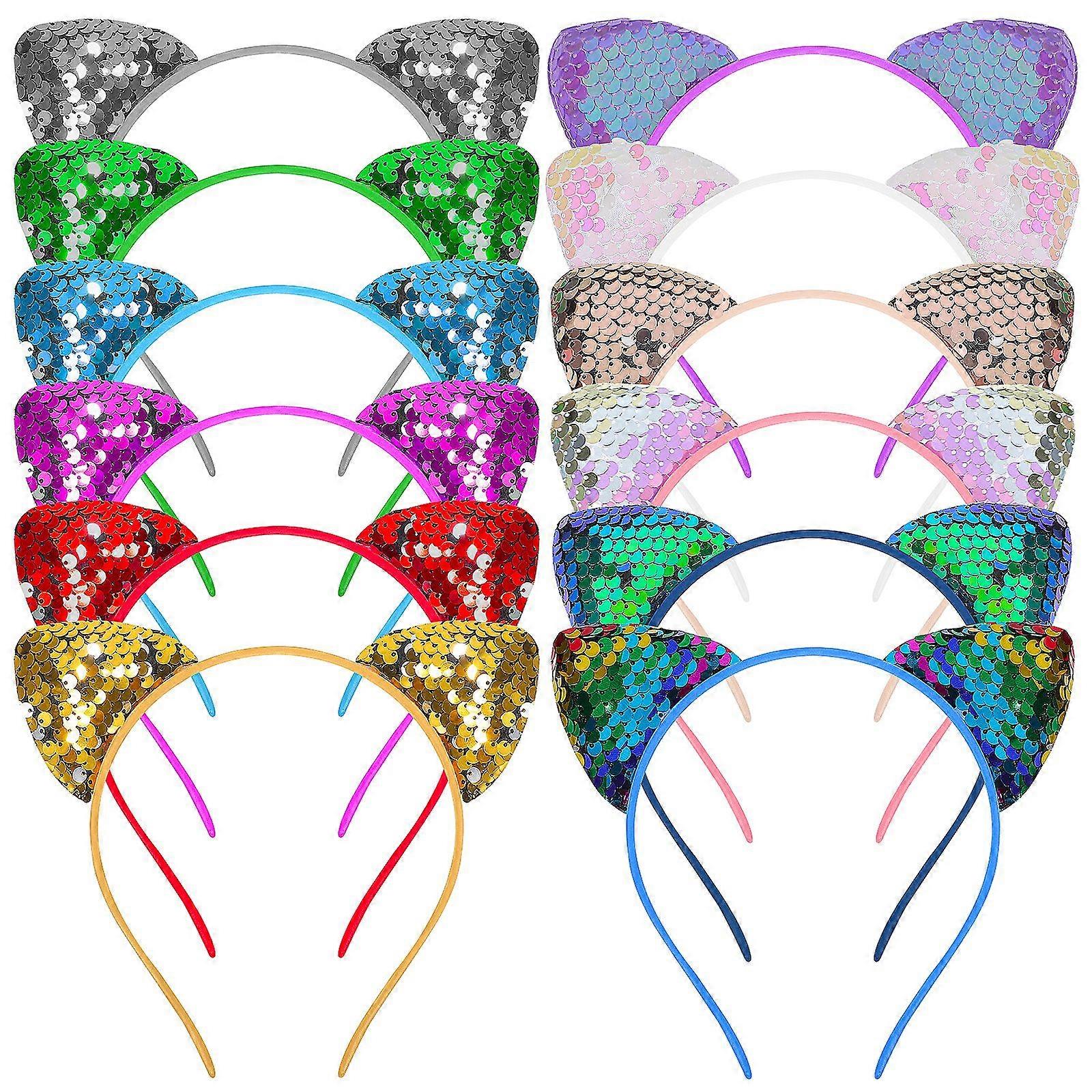 12pcs Sequin Cat Ears Headbands Shiny Cat Ears Headdress Hair Hoops Hair Accessories