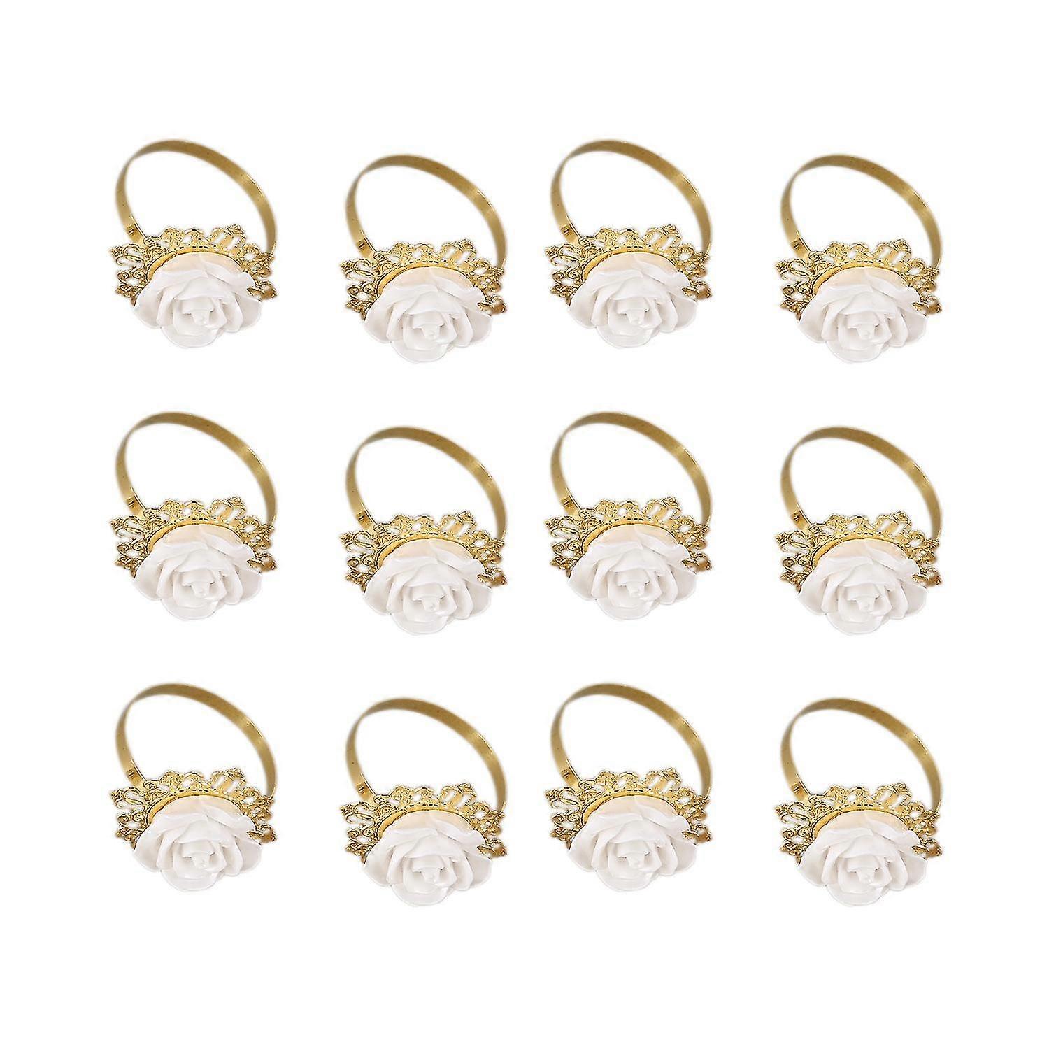 12pcs/set Resin White Napkin Ring Table Kitchen Serviette Holder For Wedding Banquet Party Dinner D