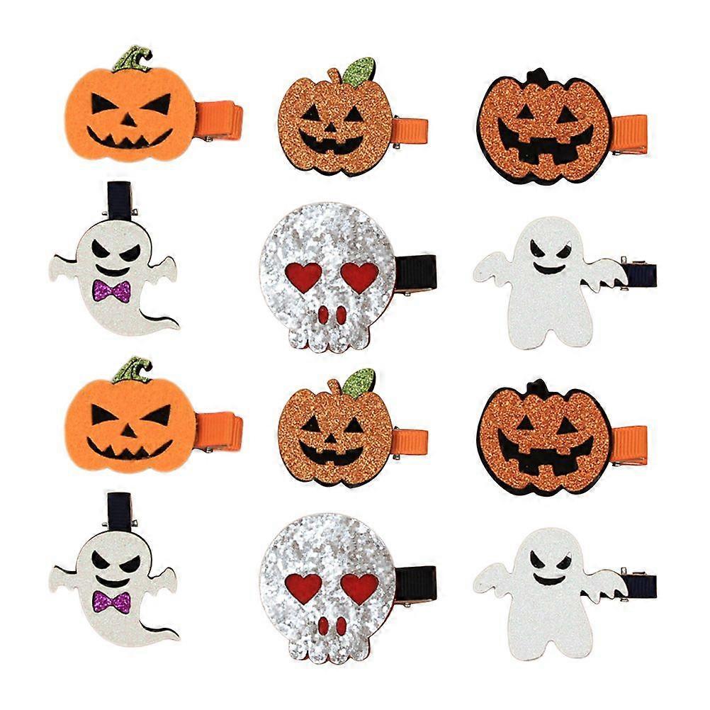 12pcs Halloween Headdress Pumpkin Ghost Skull Hair Clips Hair Pin Kids Headdress