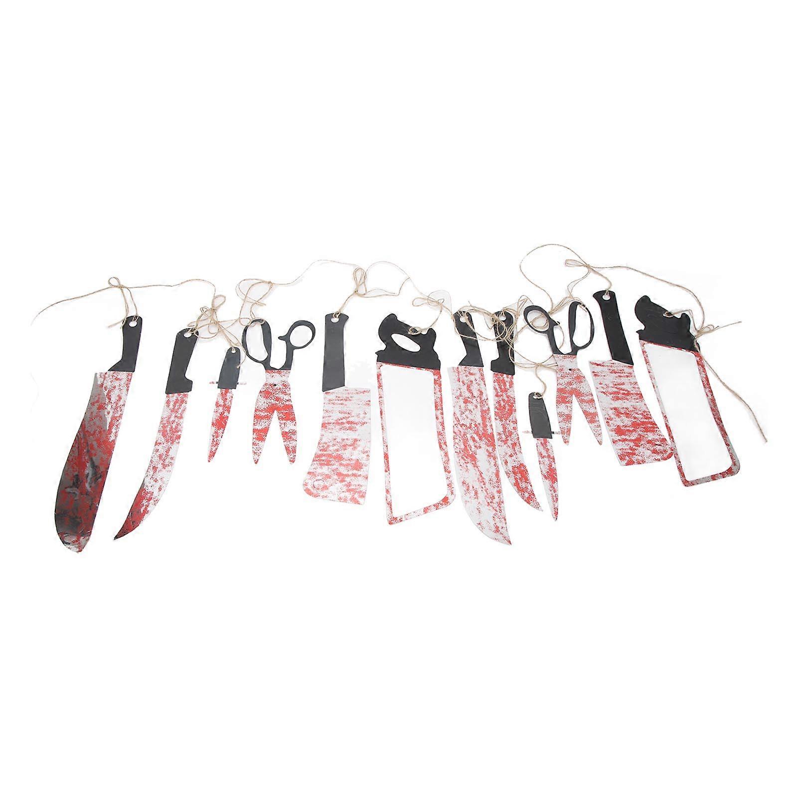 12pcs Blood Knife Hanging Banner Horrible Scenes Hallowen Decoration String Hanging Flag