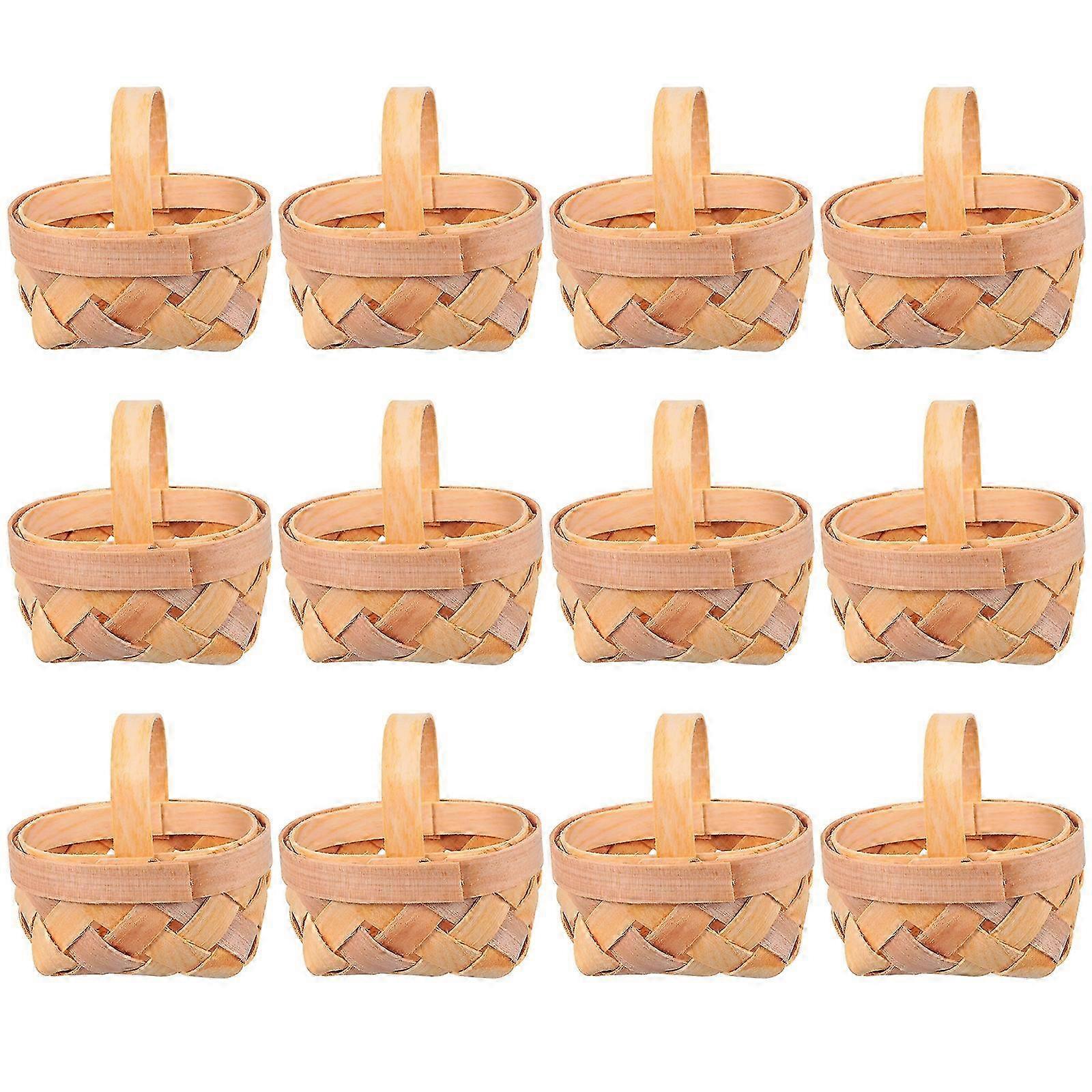 12pcs Mini Woven Wood Chip Baskets, Chocolate Decor, 7.2x6.5x5cm