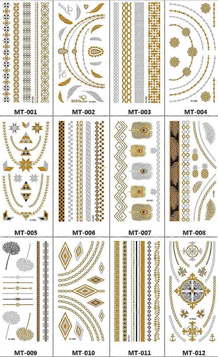 EXCLUSIVE COLLECTION - our unique Collection of glorious assorted body-art metallic boho temporary tattoos has been carefully chosen to add bling to your body.
