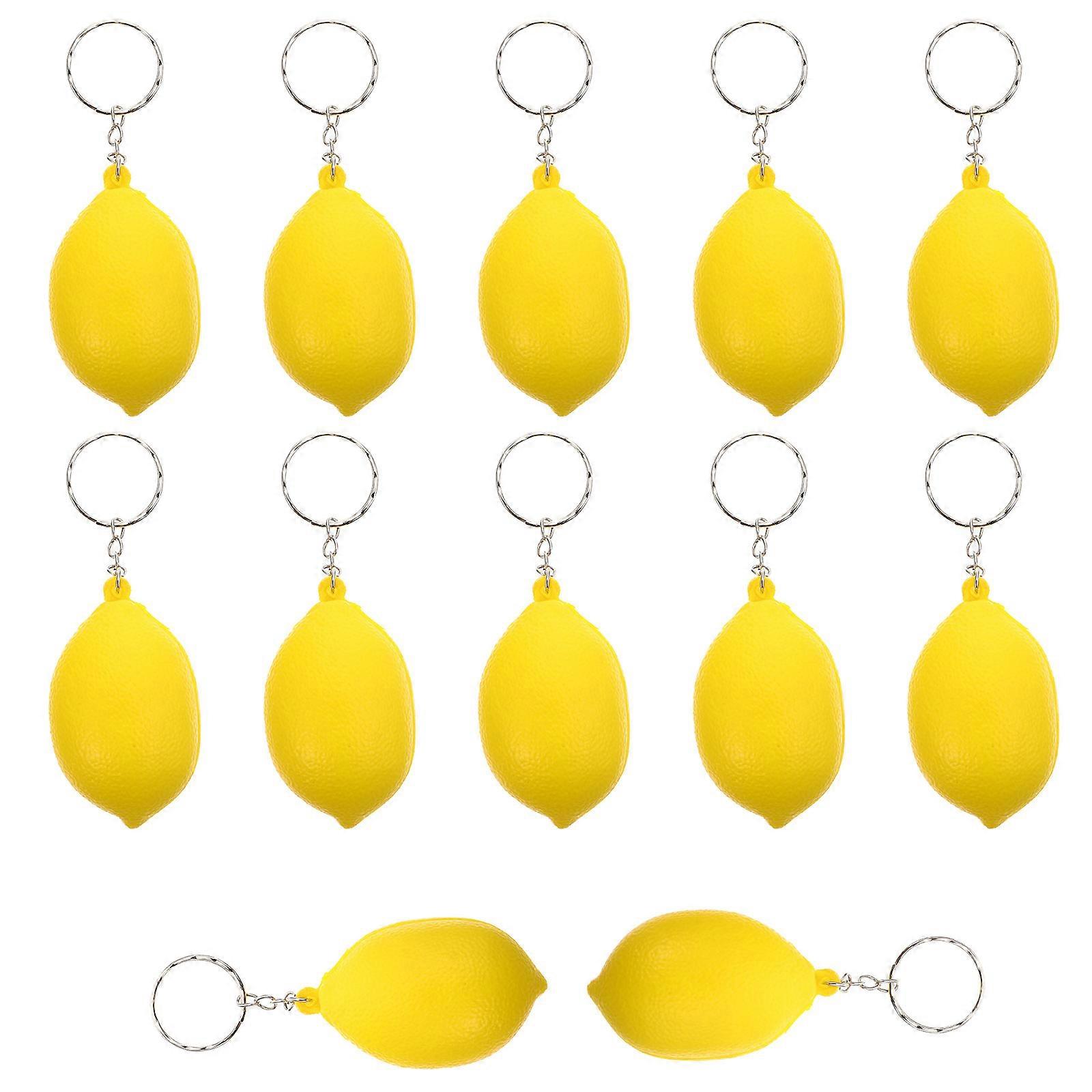 12PCS Lemon Keychains, Creative Lemon Shaped Keyrings, Durable PU Material, Perfect for Goody Bags, School Prizes, and Party Favors
