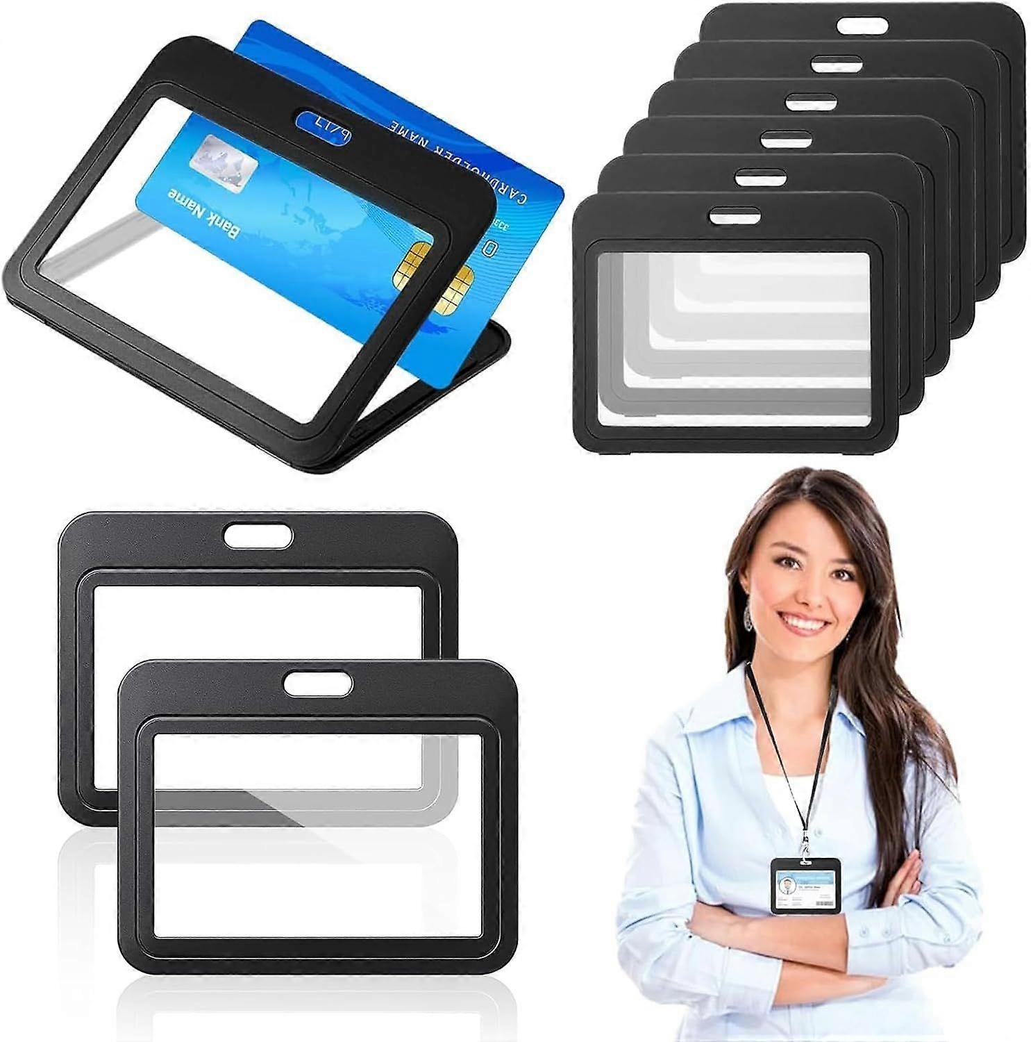 12pcs Double-Sided Id Card Holder: Transparent Flip Cover Horizontal Plastic Badge Protector Sleeve For Work Office And School