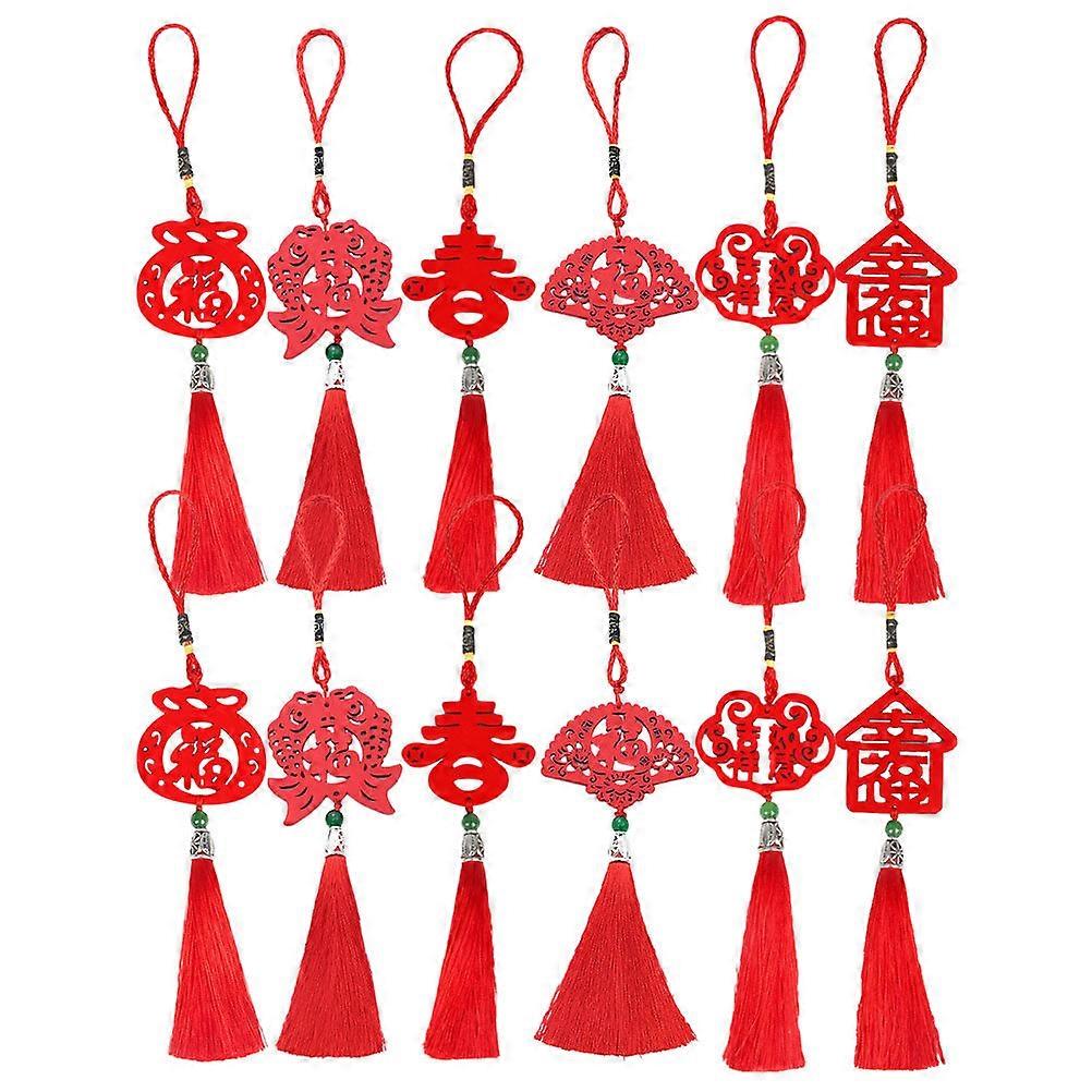 12pcs Chinese Style Wood Crafts Tassel Pendants Hanging Ornaments Car Interior Decors