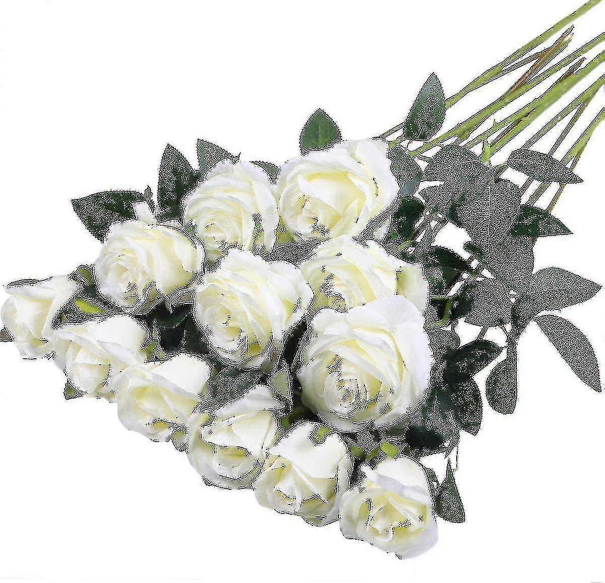 12pcs Artificial Silk Flowers Realistic Roses Bouquet Long Stem For Home Wedding Decoration Party (white) Best Gift