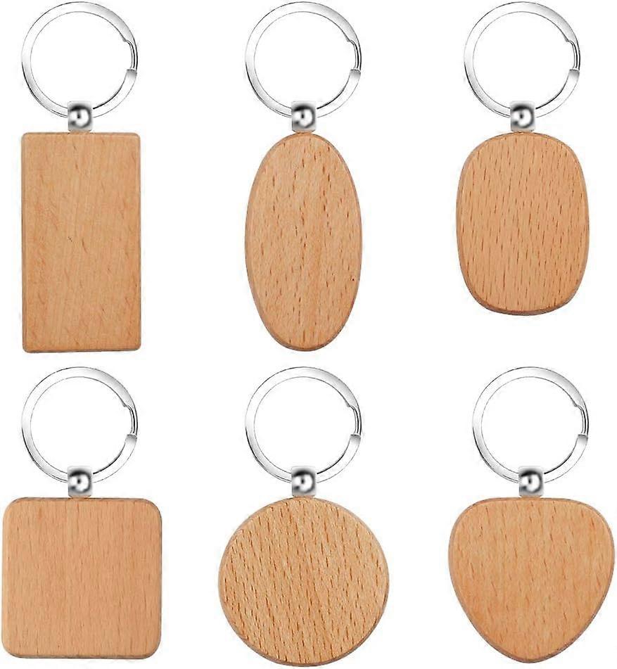 12PCS Wooden Key Ring Blank Wooden Key Chain DIY Personalized Wood Key Ring 6 Styles
