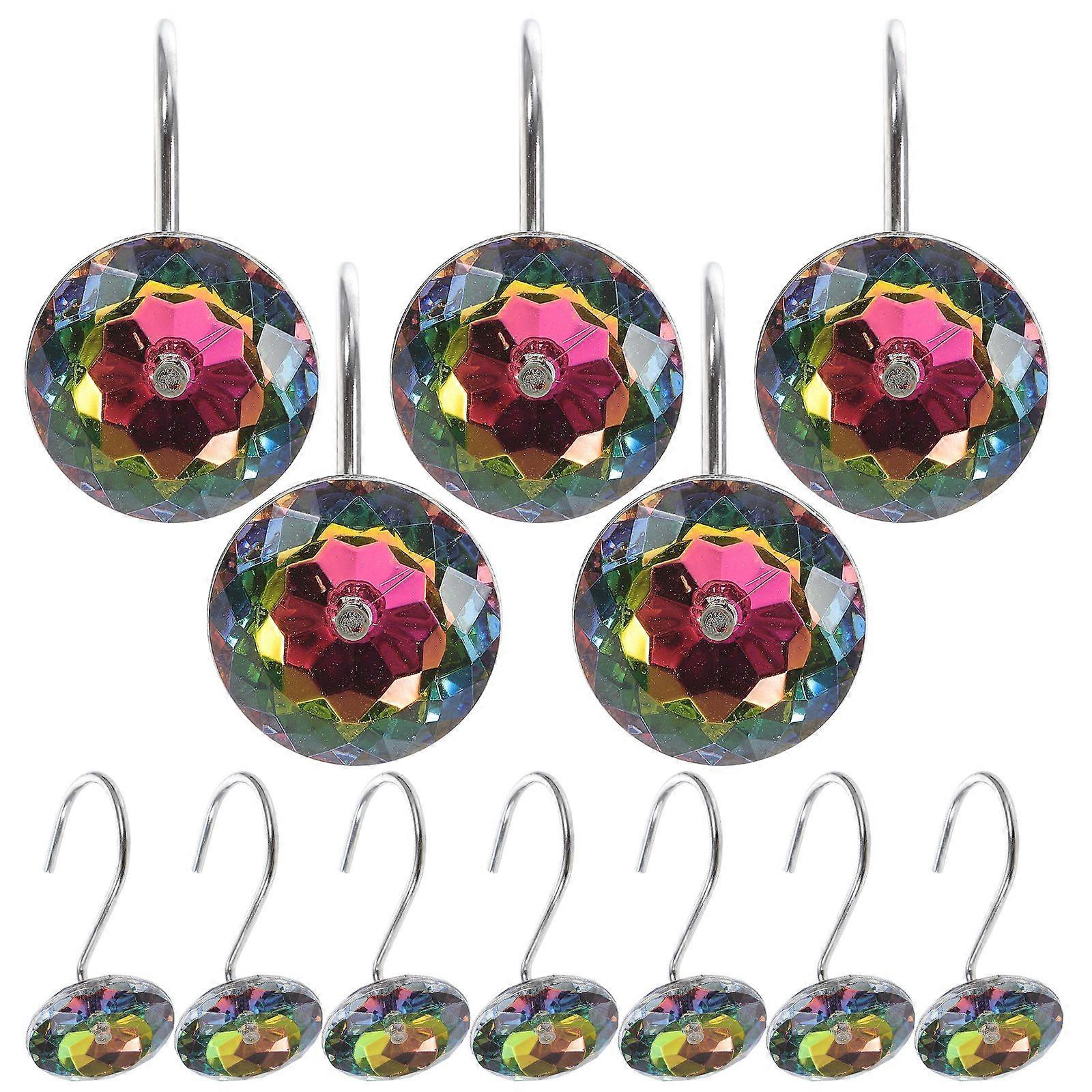 12pcs Decorative Bathroom Shower Curtain Hook Ring Shiny Faux Diamond Hanger for Curtain