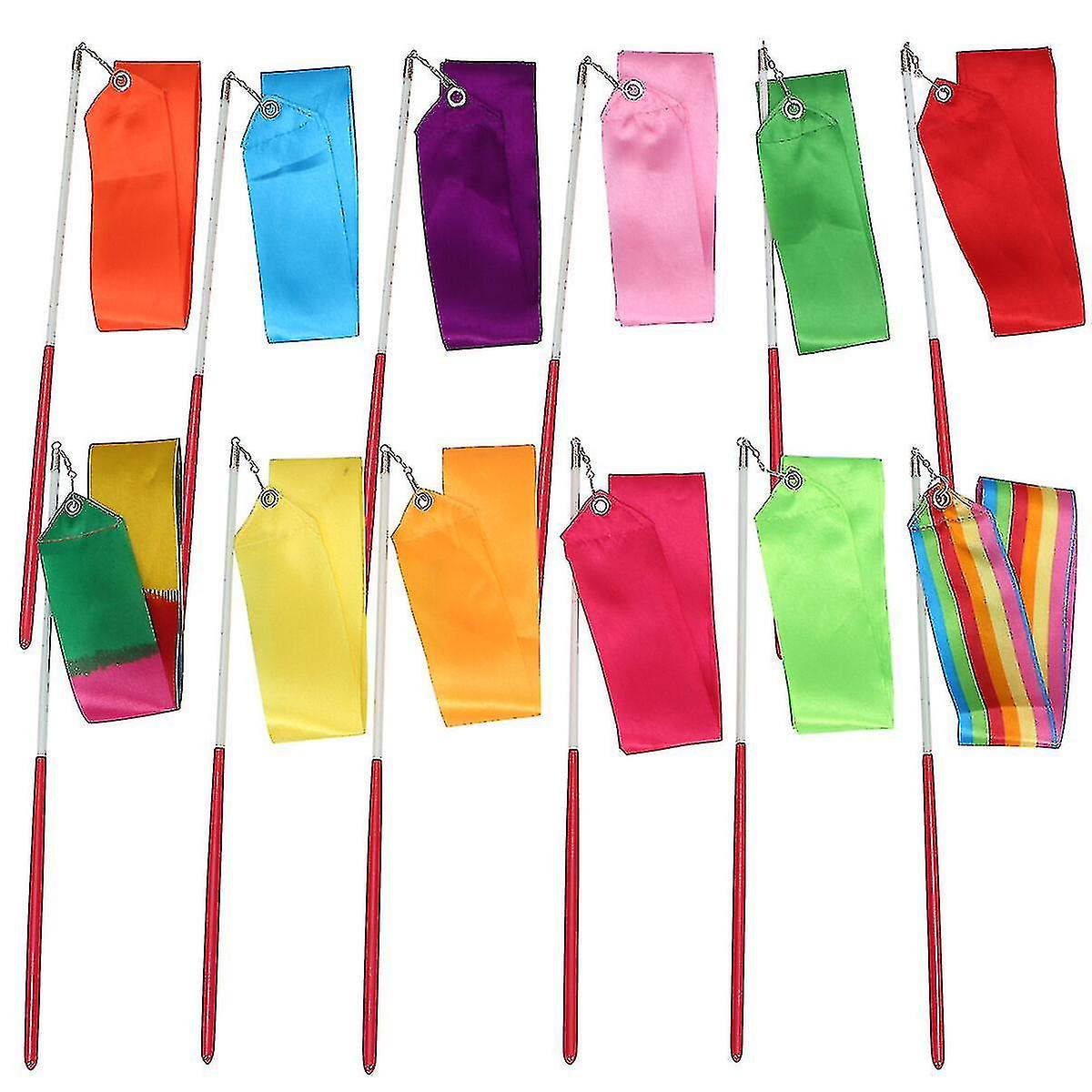 12pcs 2 Meters Rhythmic Art Gymnastics Ribbon With Stick Children Dancing Streamers Riband Rod For Gymnastics