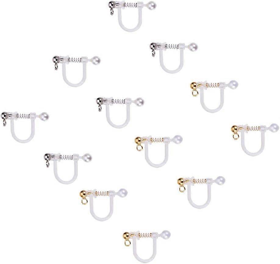 12pcs 2 Colors Plastic Clip-on Earring Findings with Loop Shell Pearl and 316 Stainless Steel Findings Golden & Stainless Steel Color Clip-on Earring