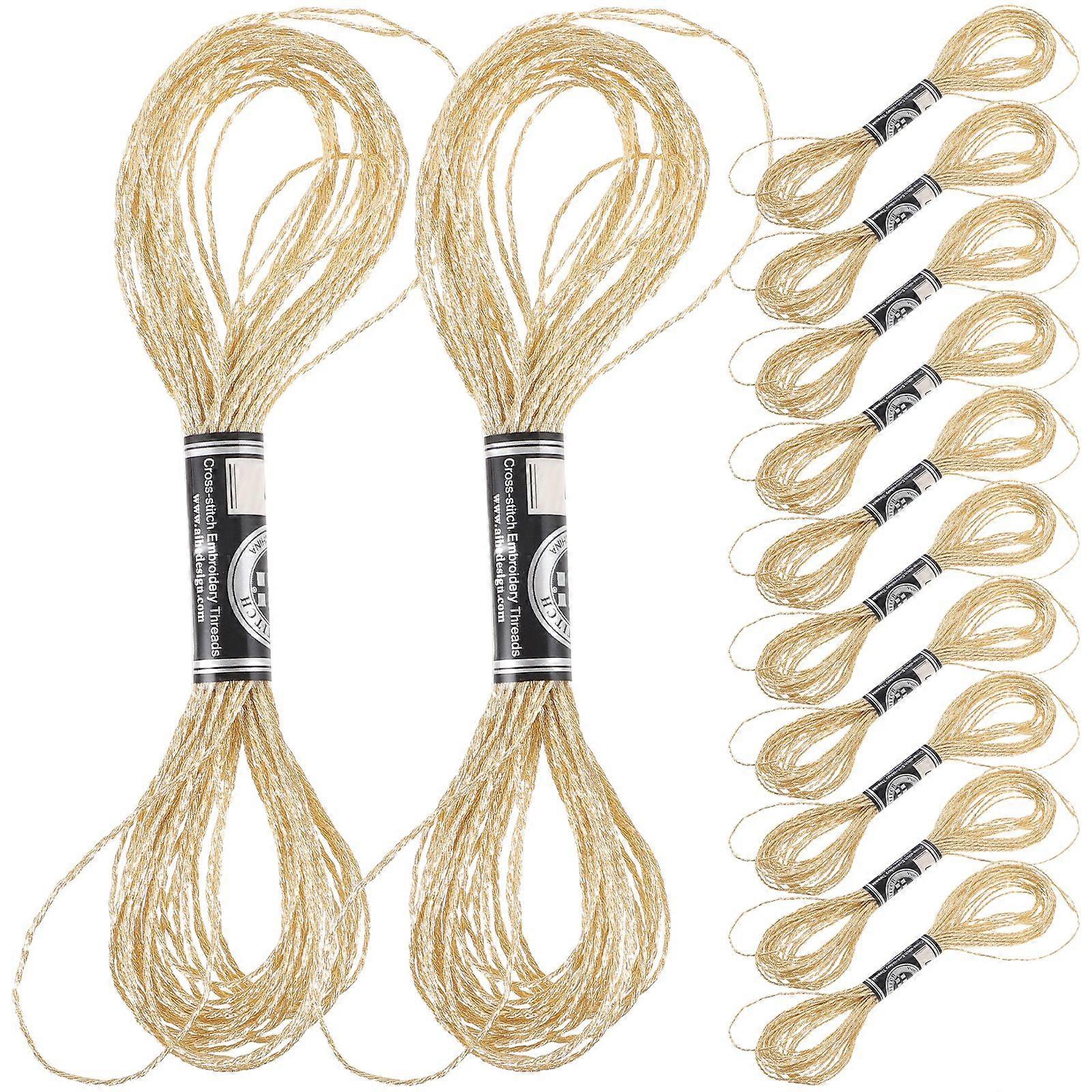 12PCS 8 Meter 12 Strands Metallic Embroidery Thread DIY Portable Household Manual Sewing Thread (Golden)