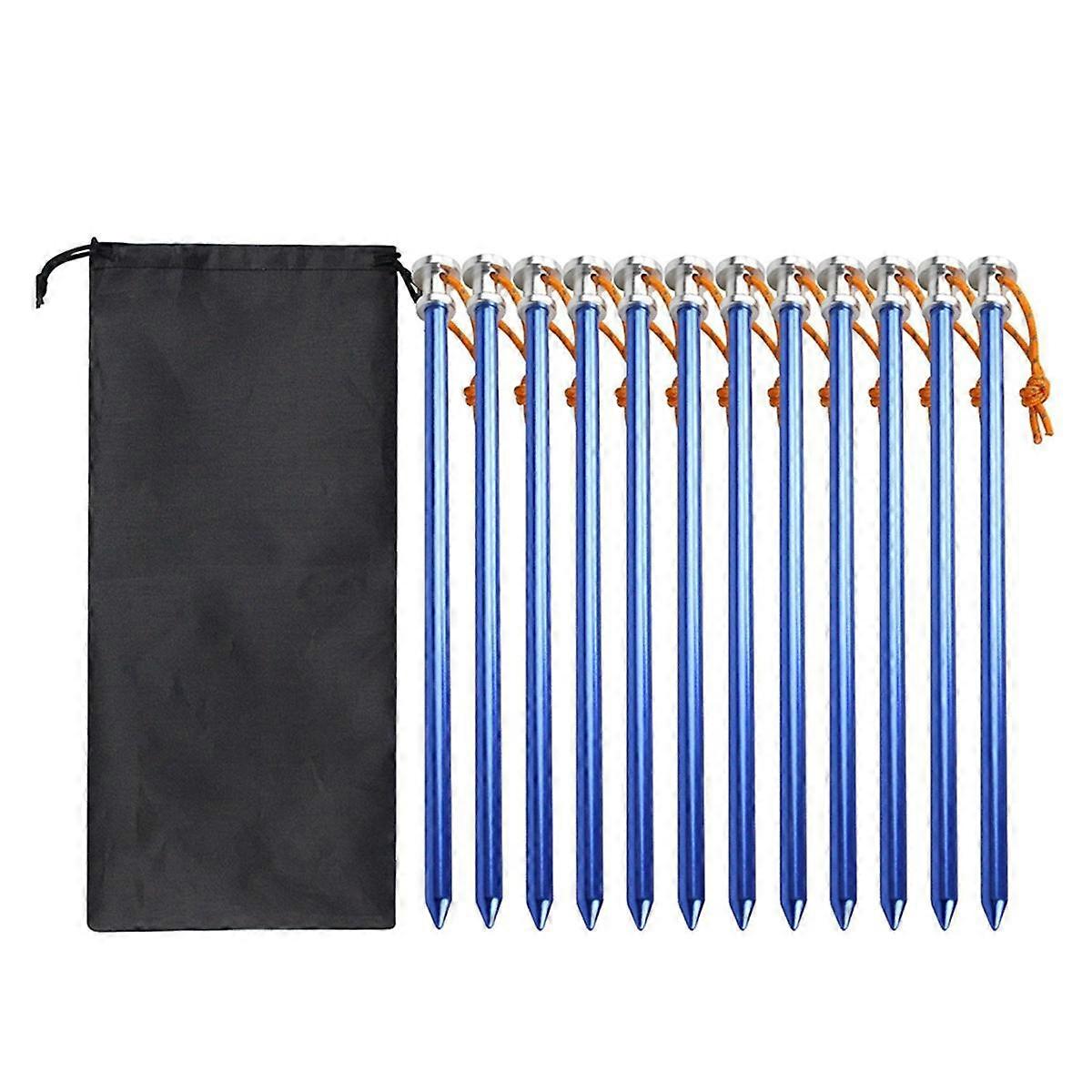 12PCS 23cm Outdoor Tent Pegs Ground Nails with Storage Bag Windproof Nails Camping Accessories Tent Fastening Blue