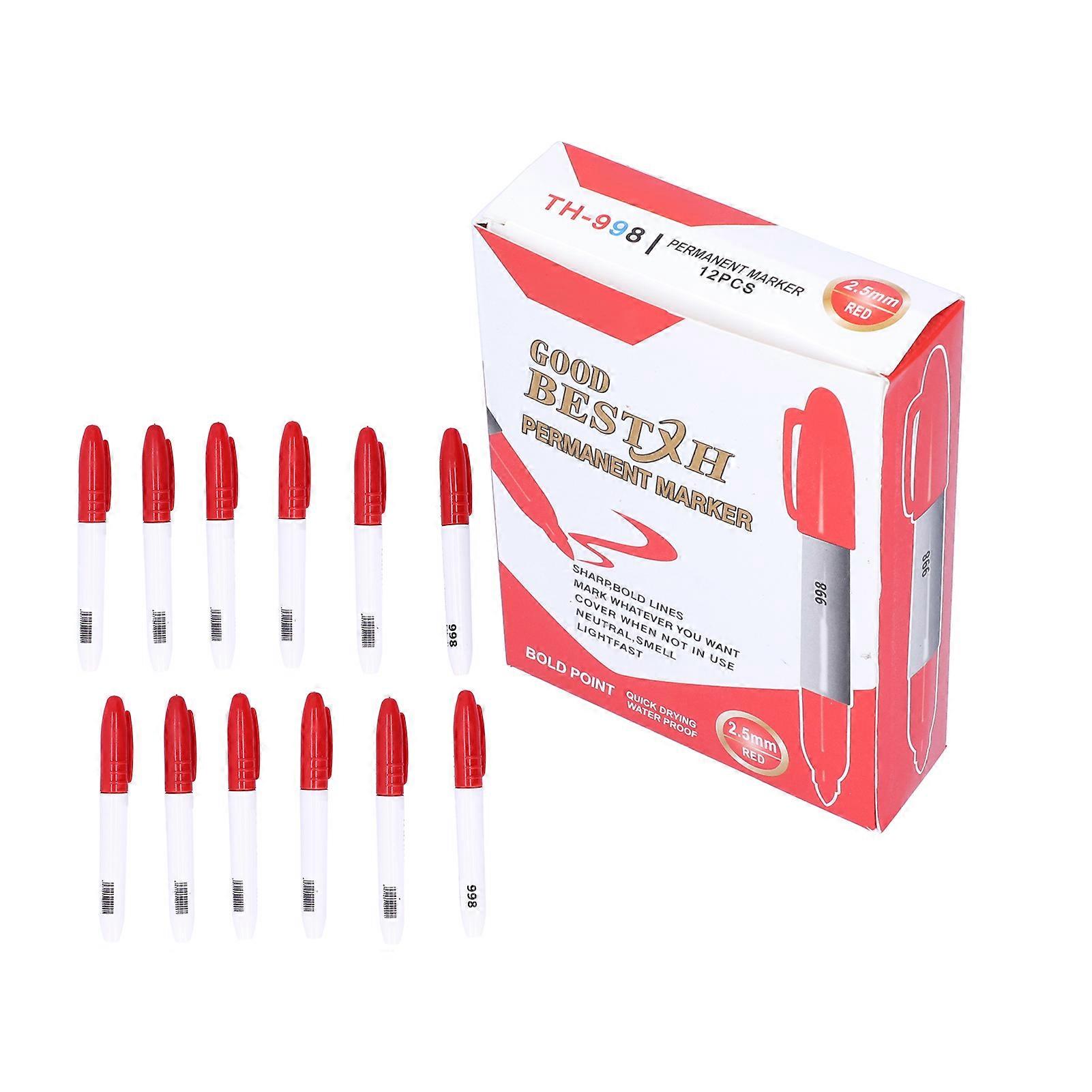 12Pcs Permanent Markers ThickHeaded QuickDrying Plastic Metal Coloring Doodling Marking Pen(Red )