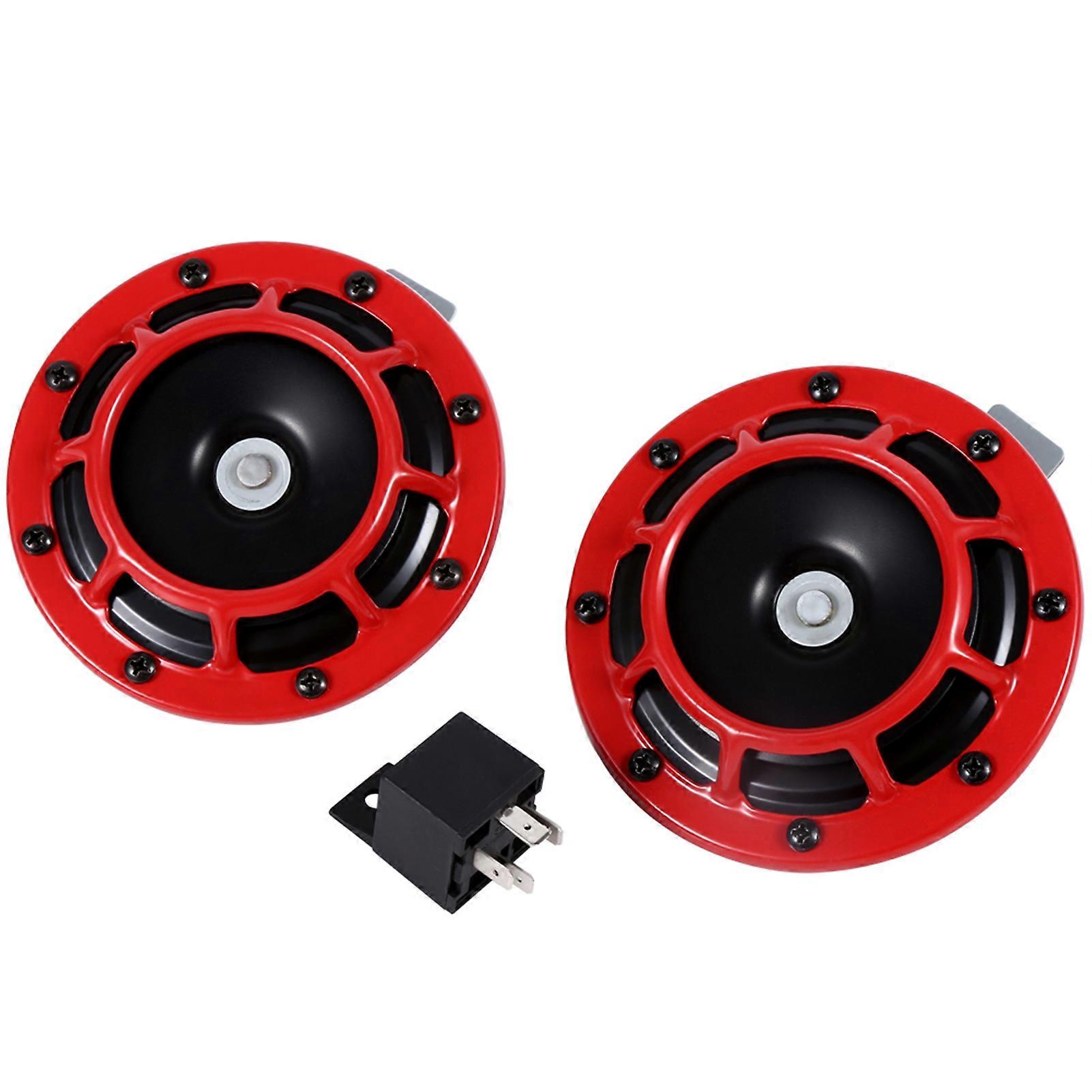 12V Car Grille Mount Electric Blast Tone Horn Super Tone Loud Compact Electric Horn Red