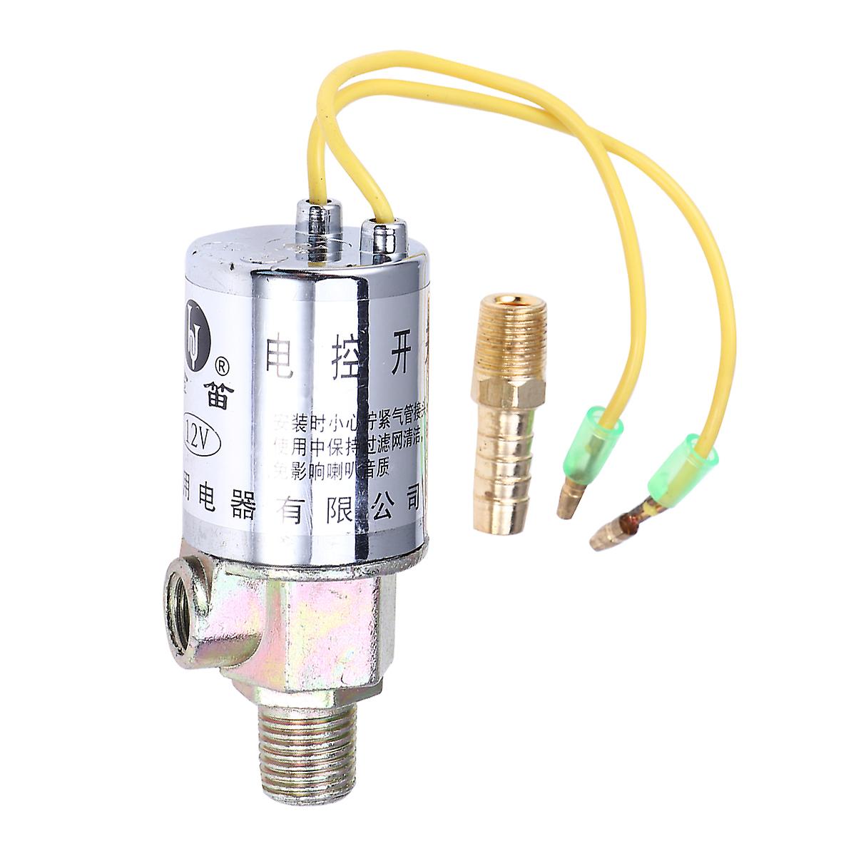 This item is a piece of air horn electric solenoid valve. It is made of durable metal with plated housing. It is perfect for car, truck, lorry air flow system. It fits for 12 volt DC vehicles. Includes a 1/4 inch BARB fitting for 1/4 inch ID hose.