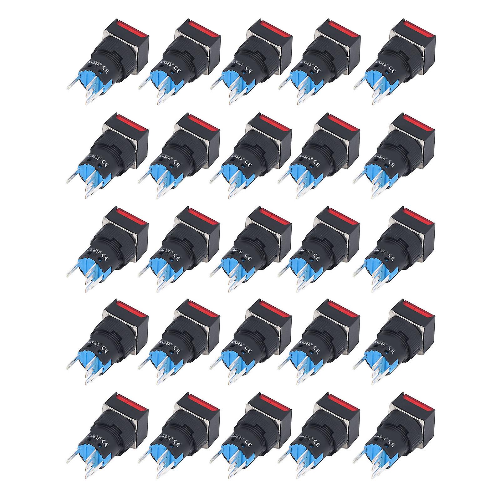 12V Red 25Pcs 16mm Square Push Button Switch Momentary Self - Locking with Light Set Kit