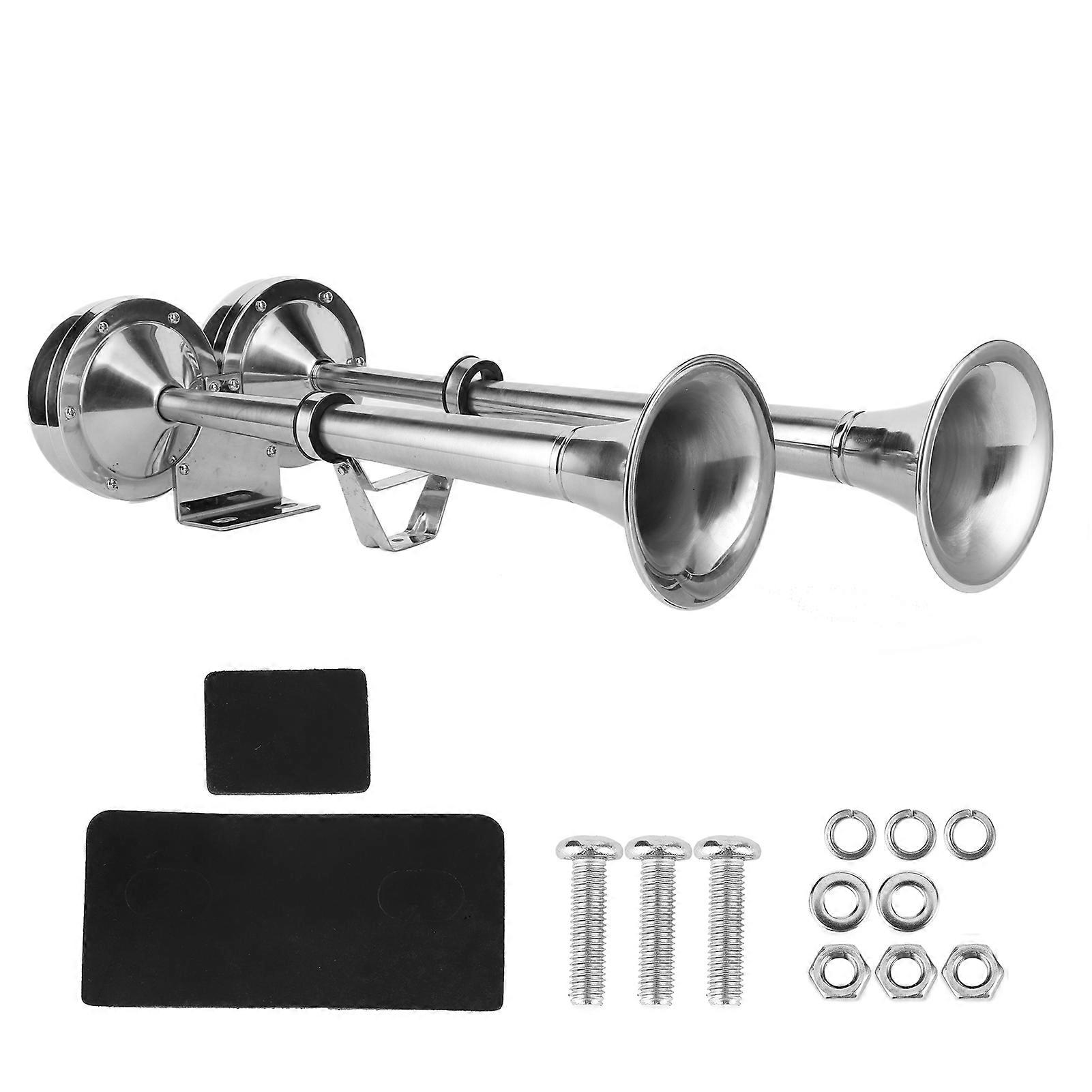 12V Dual Trumpet Air Horn 304 Stainless Steel Polished Siren for Marine Boats RV SUV Truck