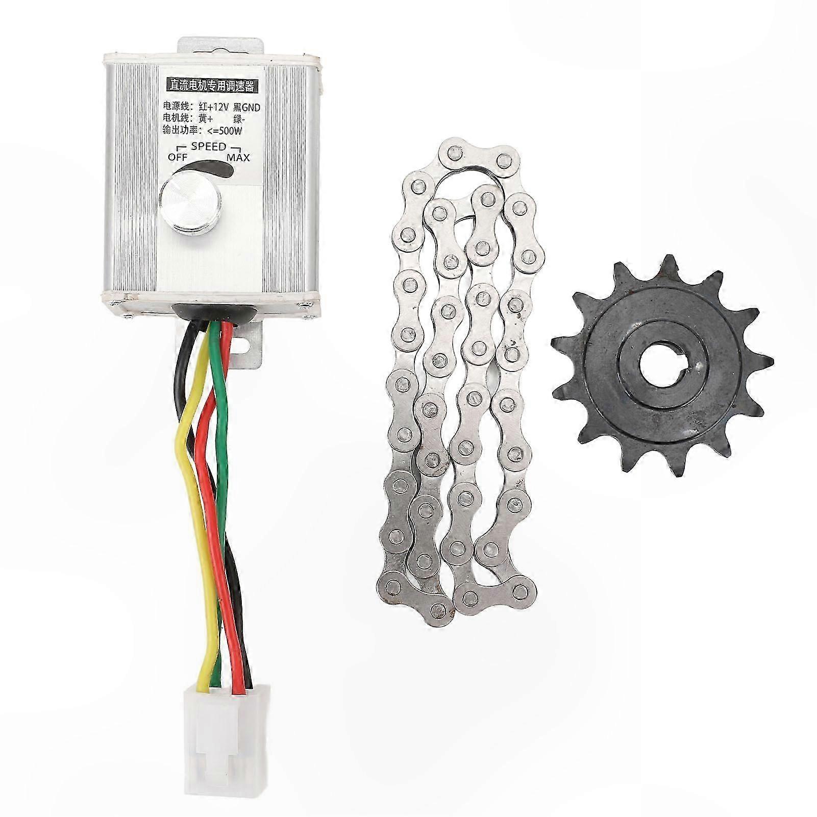 12V 500W Motor Speed Control with Chain and Sprocket Setup
