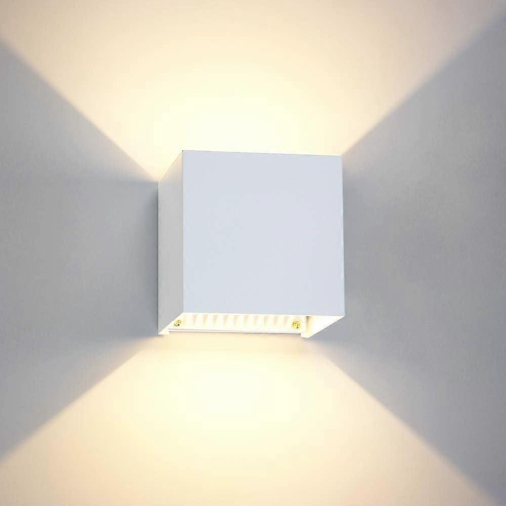 Color temperature: approx. 2800 Kelvin (warm white) Power: 12W. Super bright Protection class: IP65 (protected against strong water jets), robust, high-quality material for outdoor use Product dimensions: 10 x 10 x 10 cm Energy-saving, environmentally friendly. Classic and elegant. Material: Aluminum / Color: White. Adjustable beam angle With flexible metal slats, the wall lamp can create an adjustable beam of light, spread a pleasant light, and create effective lighting up and down. 12W IP65 waterproof suitable for indoor and outdoor use Splashproof aluminum housing according to IP65 approved for indoor and outdoor lighting Ideal illumination for interiors, wet rooms, house entrances and house fronts, etc.