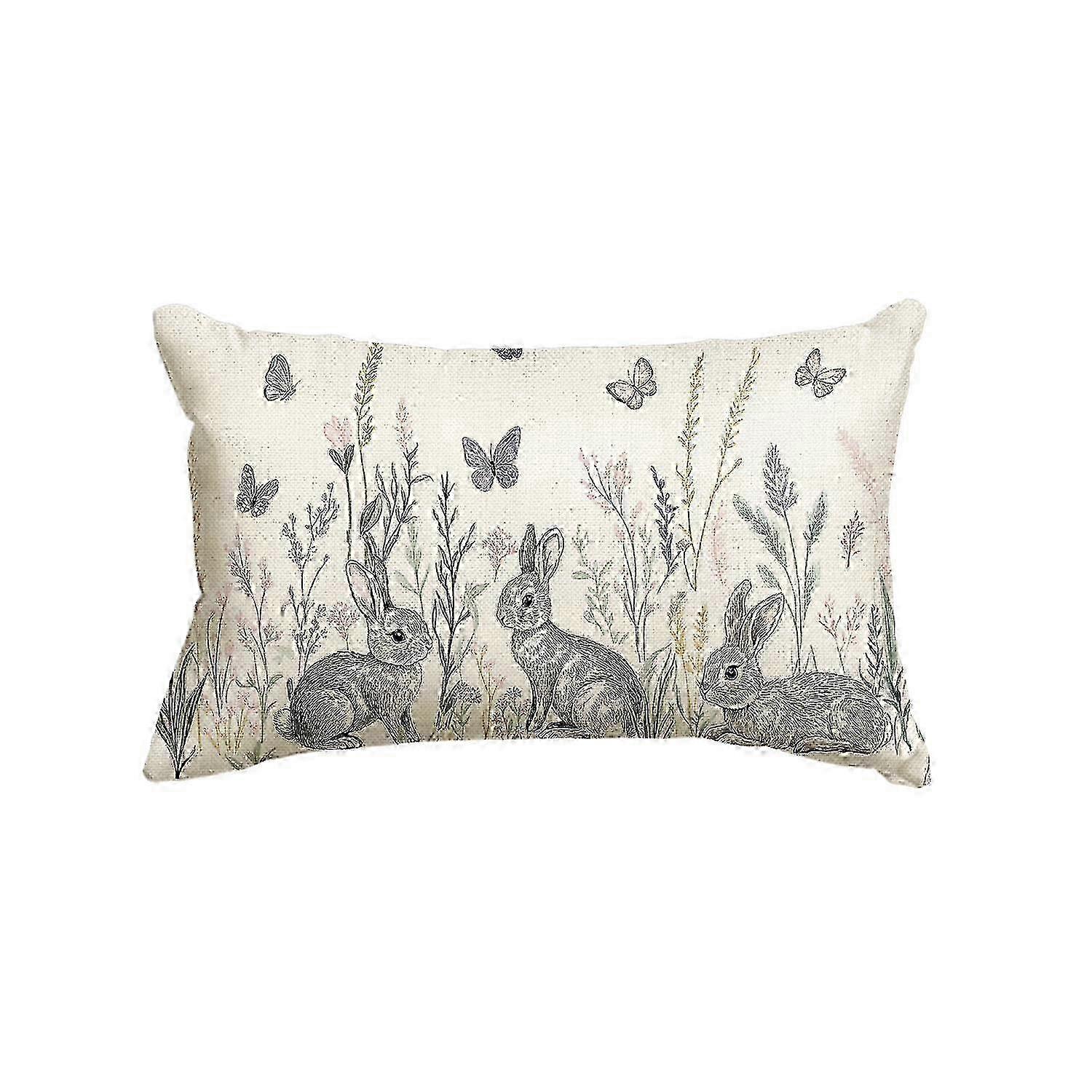 12x20 Inch Easter Bunny Throw Pillow Cover - Floral Rabbit Cushion Case for Sofa & Couch