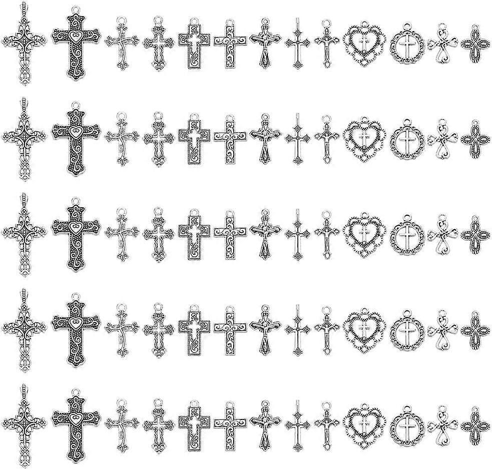 13 Styles Tibetan Style Cross Charm Pendants, 130Pcs Alloy Crucifix Pendants for Jewelry Making Supplies Antique Silver Plated Cross Charms for Earrin