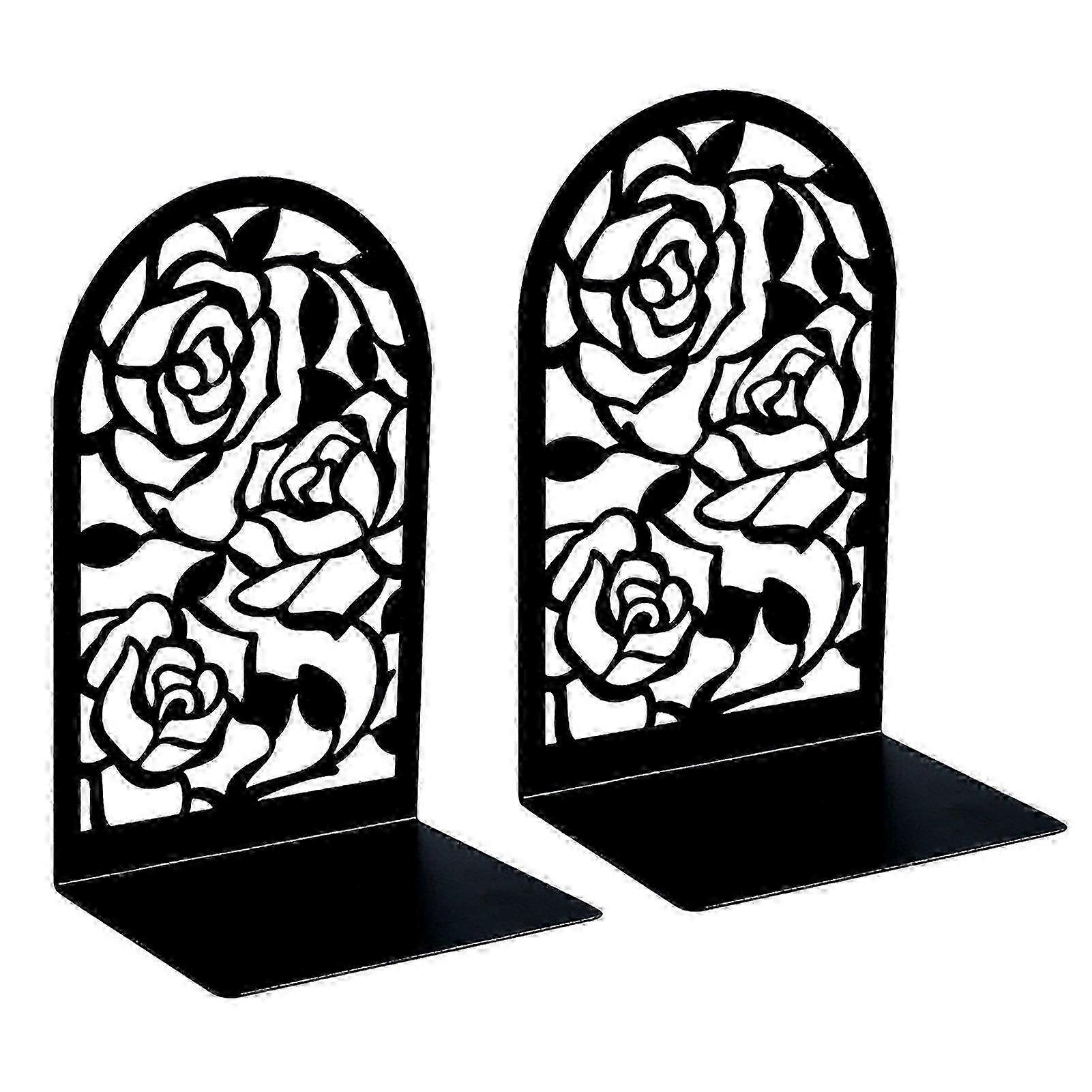 1/3 Pairs Metal Bookends Hollow Rose Flower Design Bookends Heavy Duty Book Supports Non-skid Book Stoppers Jikaix