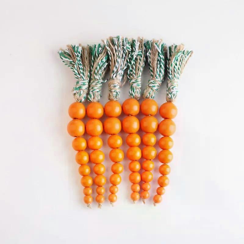 Wooden Bead Carrot Spring Decoration Easter Beaded Garland Farmhouse Home Decor String Hemp Rope Tassel Easter Carrot Bead Decor