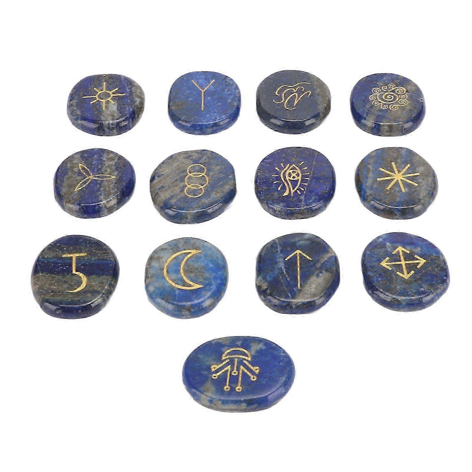 13Pcs Rune Jadestone Stones Set Witch Divination Healing Energy Aerobic Yoga Meditation Aids Lapis Lazuli-Yvan
