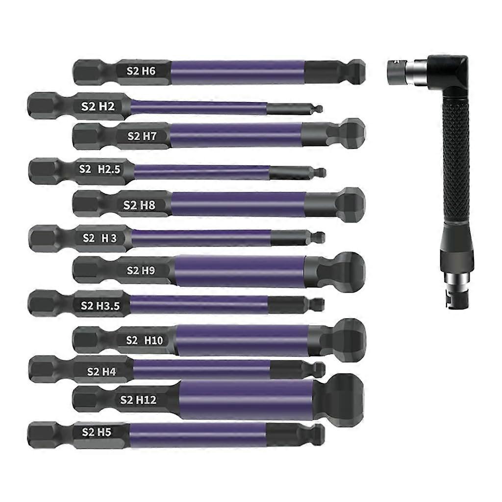 13Pcs/Set 1/4 Inch Shank S2 Alloy Steel Hexagonal Ball End Screwdriver Bits with Dual Head Socket