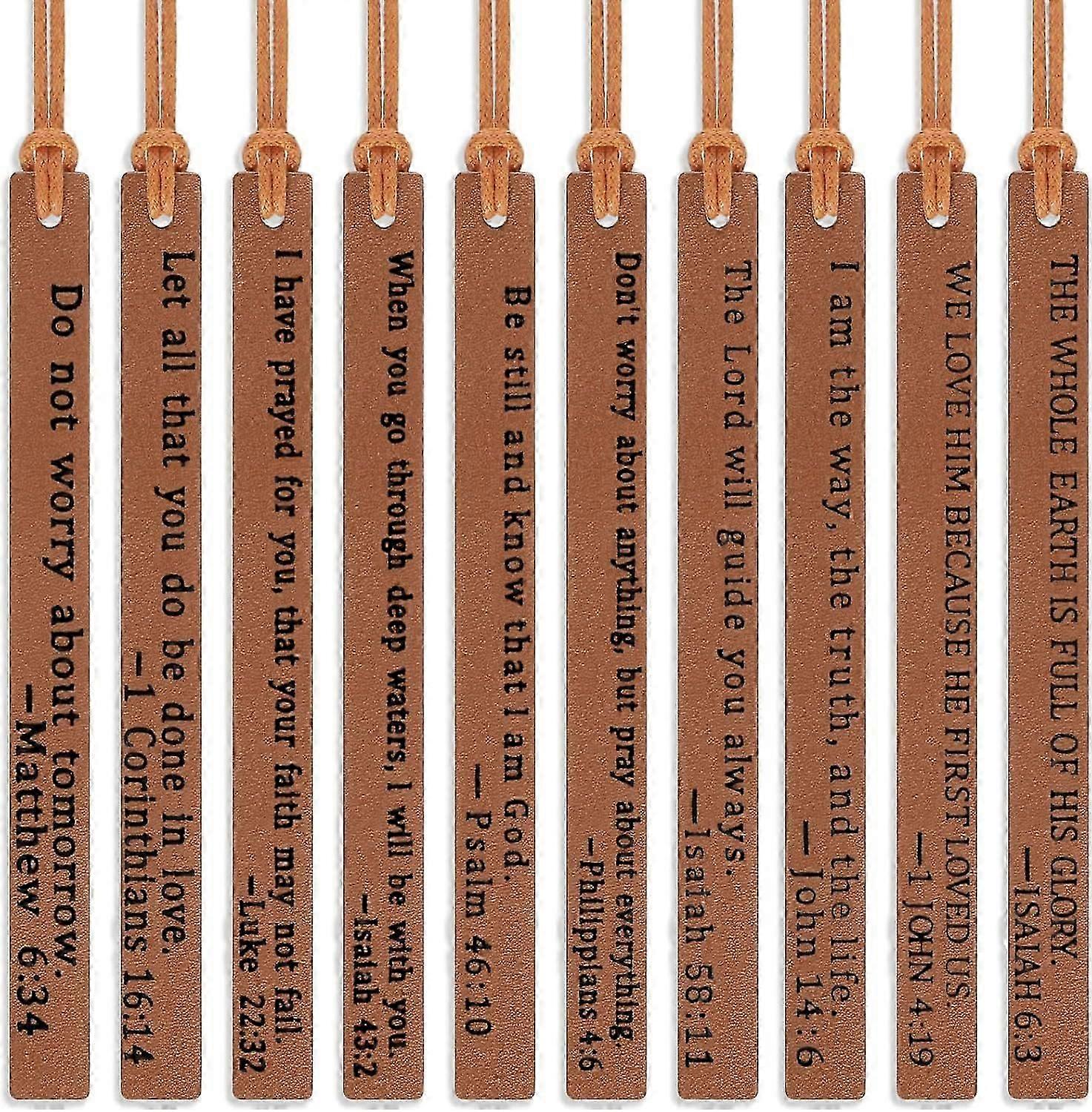 1.30.215cm 10Pcs Bible Bookmarks Christian Vintage Leather Bookmark Handmade Page Markers Inspirational Scripture Book Marks for Men Women Reading Boo