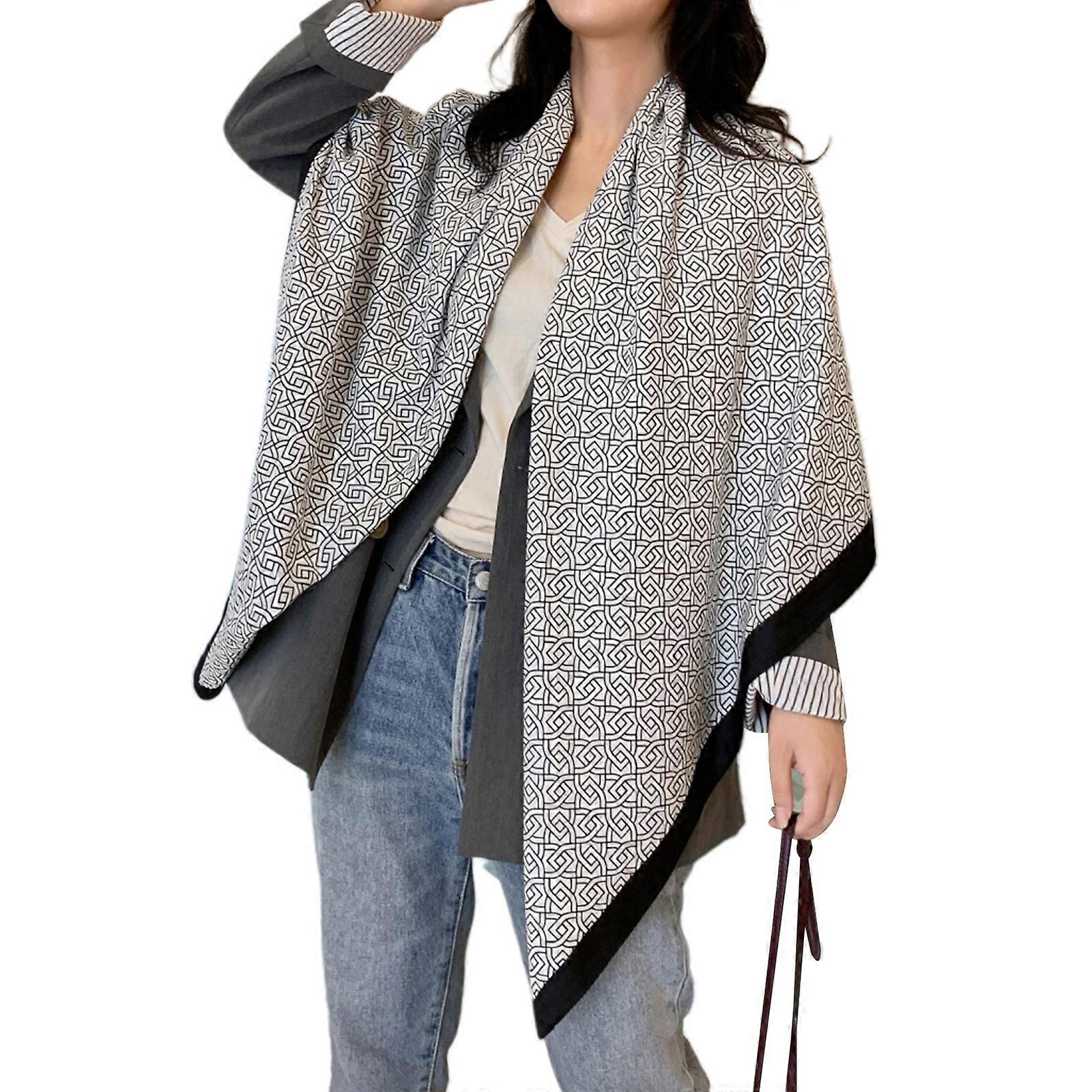 130x130cm Large Fashion Geometric Printed Scarf Women Twill Imitation Silk Hijab Scarf Luxury Shawl Bandanas Turban White