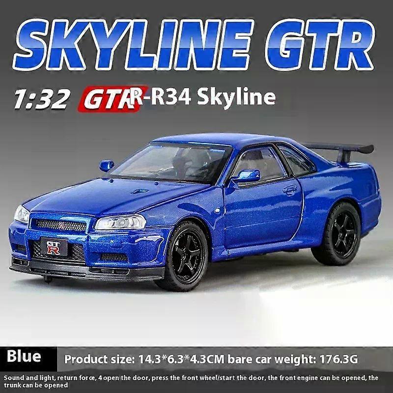 1:32 Nissan GTR R34 Skyline Supercar Alloy Metal Diecast Car Model Toy Racing Car Simulation Sound Light Childrens Gift