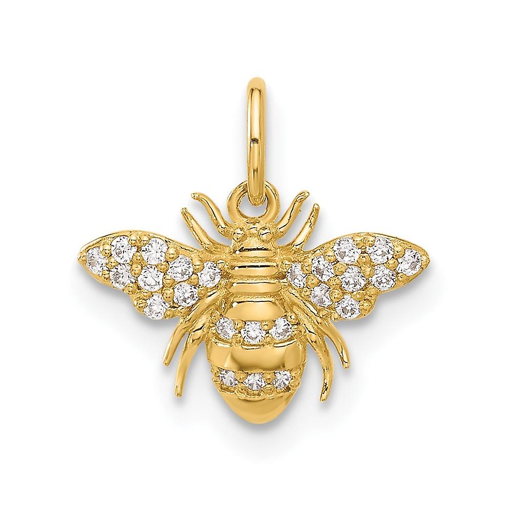 13.3mm 10k Solid Yellow Gold Polished Clear Cubic Zirconia Bee Charm Pendant Necklace for Women