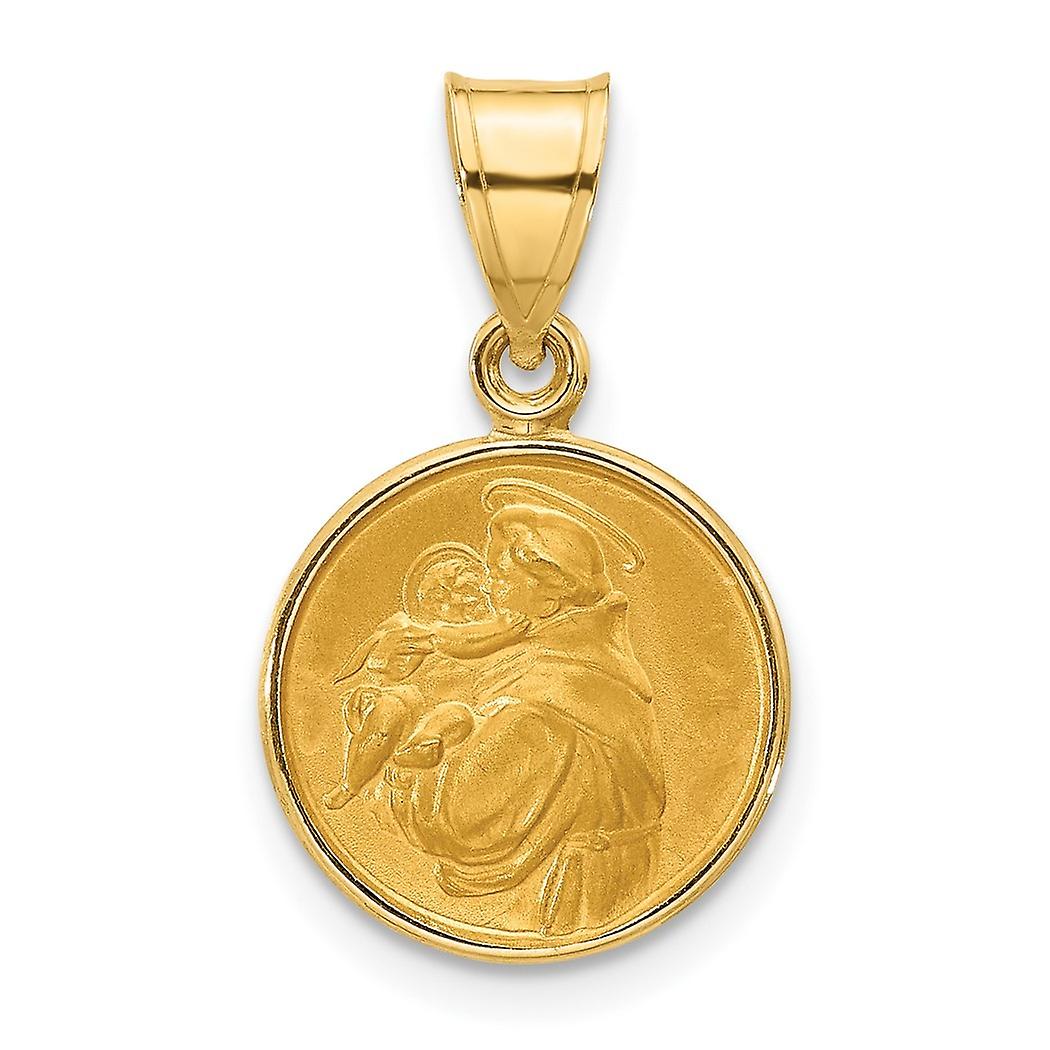 13.3mm 14k Solid Yellow Gold Polished and Satin St. Anthony Medal Pendant Necklace-Pendant for Women